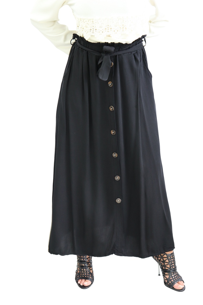 Cette pièce est unique en son genre. Remarquez tout le long de la jupe, les boutons déposés délicatement. Notez aussi sa couleur singulière qui vous rendra fière de posséder un modèle qui épouse vos courbes sans rien en montrer et qui vous couvre de la taille aux pieds !