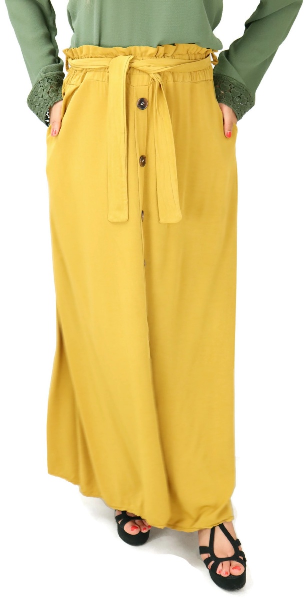 Belle jupe confortable et originale avec deux poches pour mettre vos effets. Sa taille est élastique et ornée d'une ceinture. Son tissu en viscose est léger et doux au toucher, elle est donc parfaite pour la saison printemps-été.