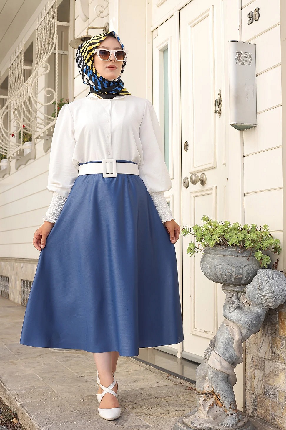 Jupe mi longue pour femme (Vetement Turquie en ligne) - Couleur bleu indigo Vetement & Accessoire