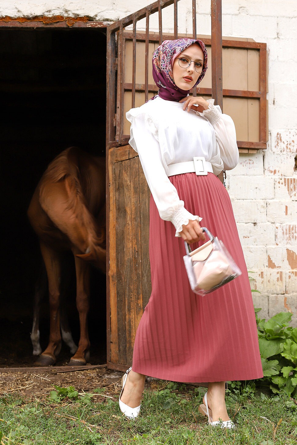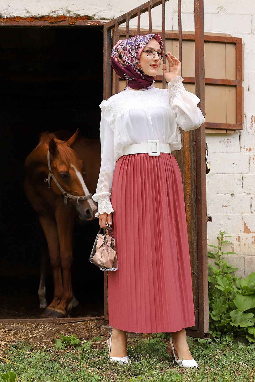 Jupe plissée pour femme (Vetement pas cher et Mode Hijab) - Couleur bordeaux - REF. 32287 (12.00 €) - En Promotion à 9.90 €