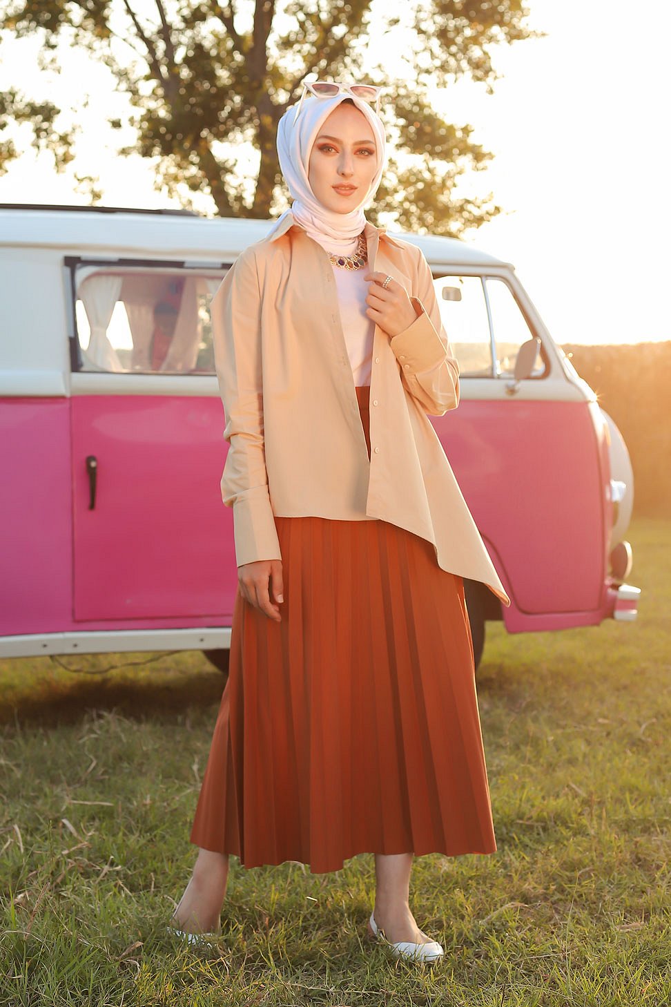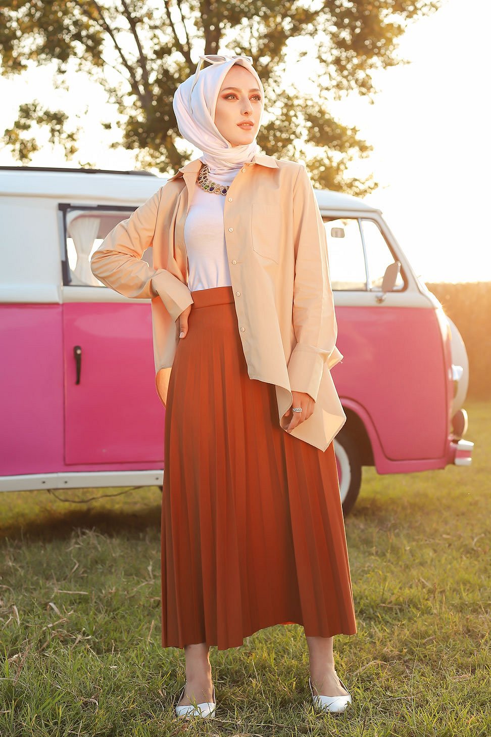 Jupe plissée pour femme - Couleur rouille Vetement & Accessoire