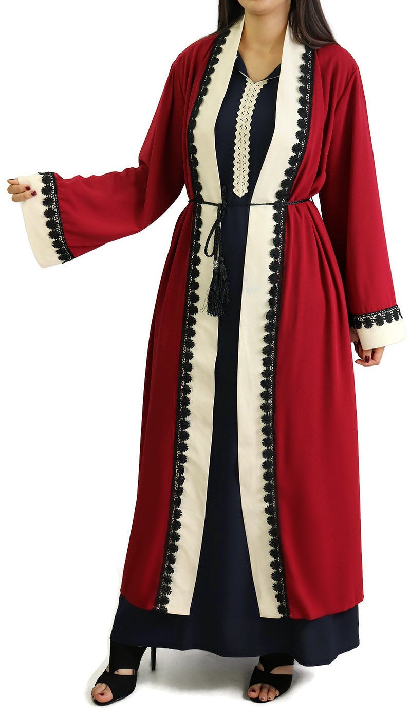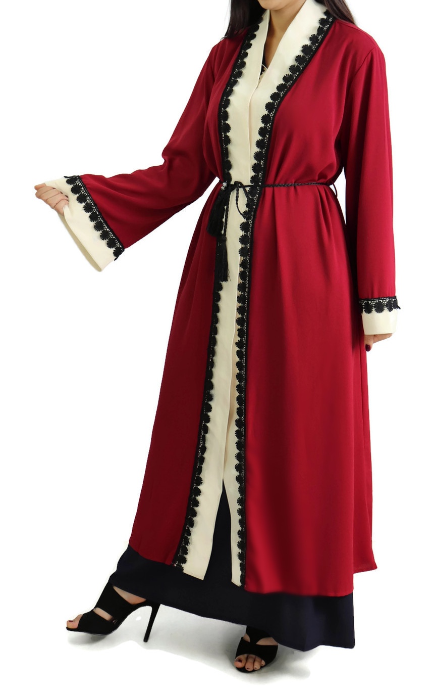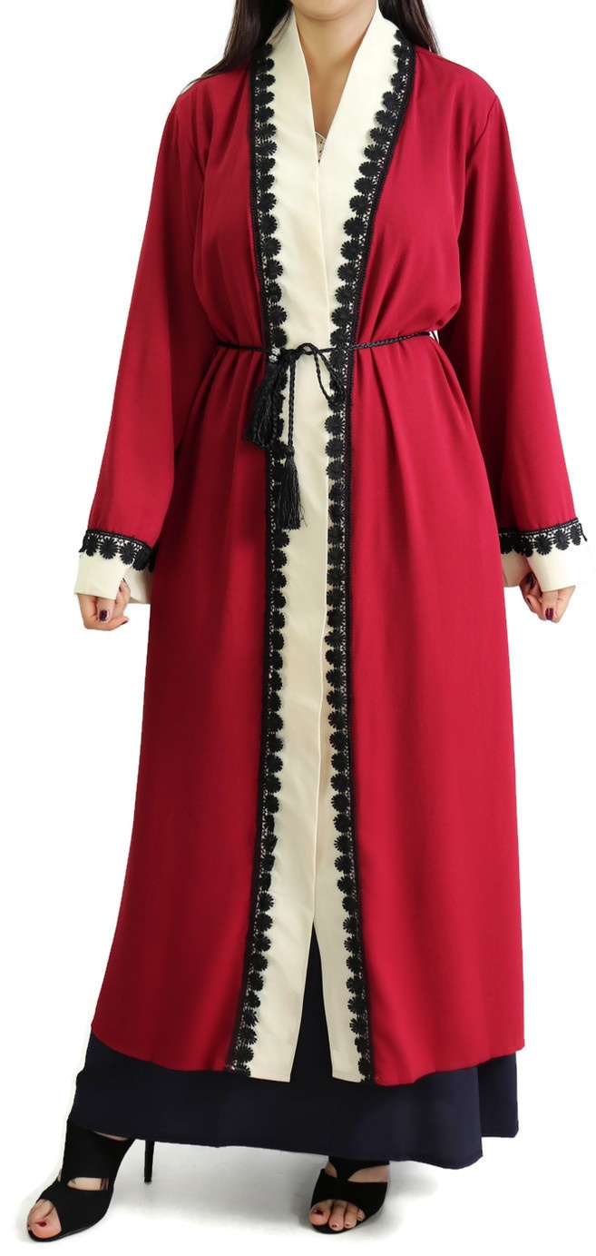 Kimono avec dentelles de couleur bordeaux Vetement & Accessoire