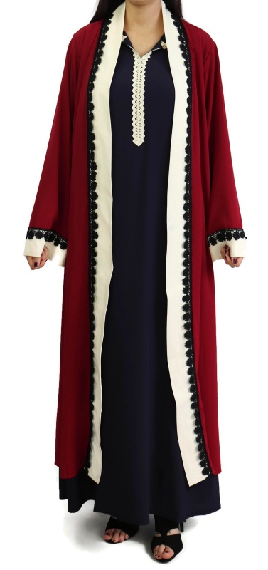 Veste longue bicolore à capuche (Mode Musulmane) - Couleur blanc et bordeaux - REF. 38684 (29.90 €)