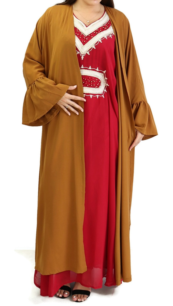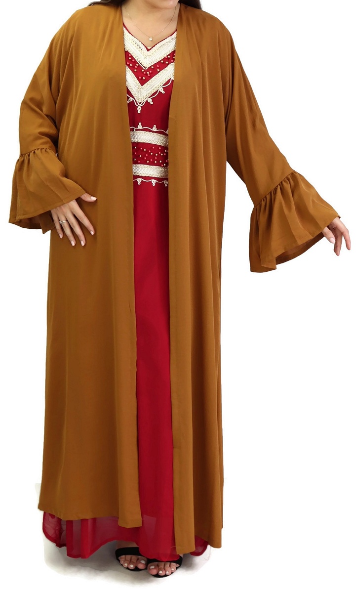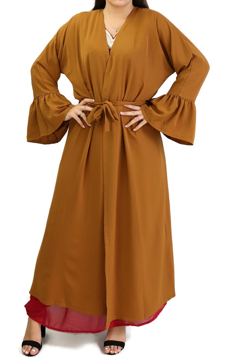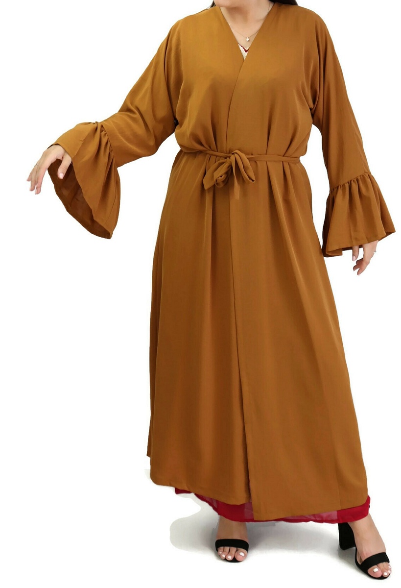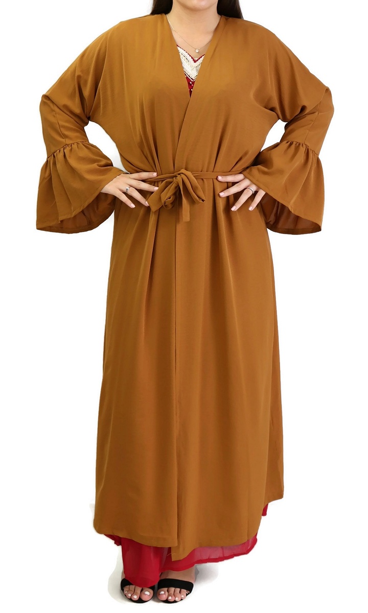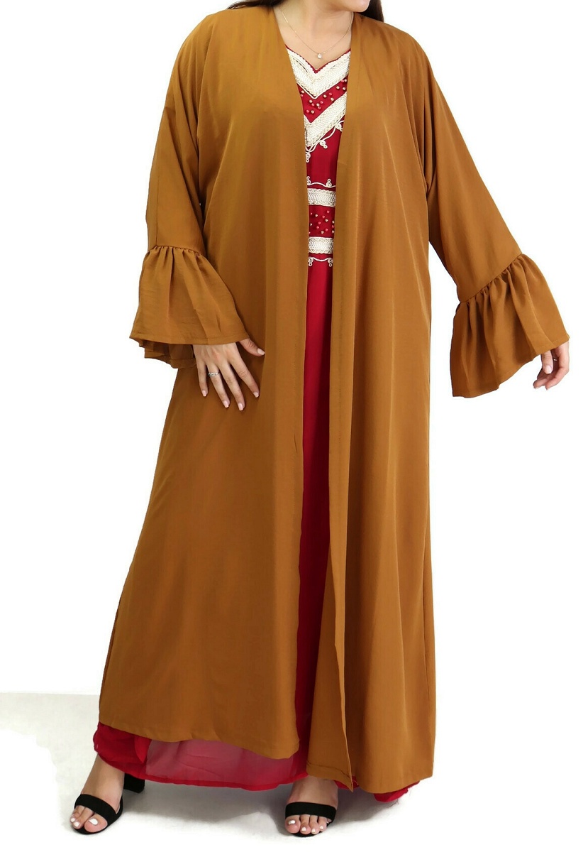 Gilet Veste long manches à froufrou (Boutique Vêtements femmes voilées) - Couleur Rouille - REF. 33935 (25.00 €)