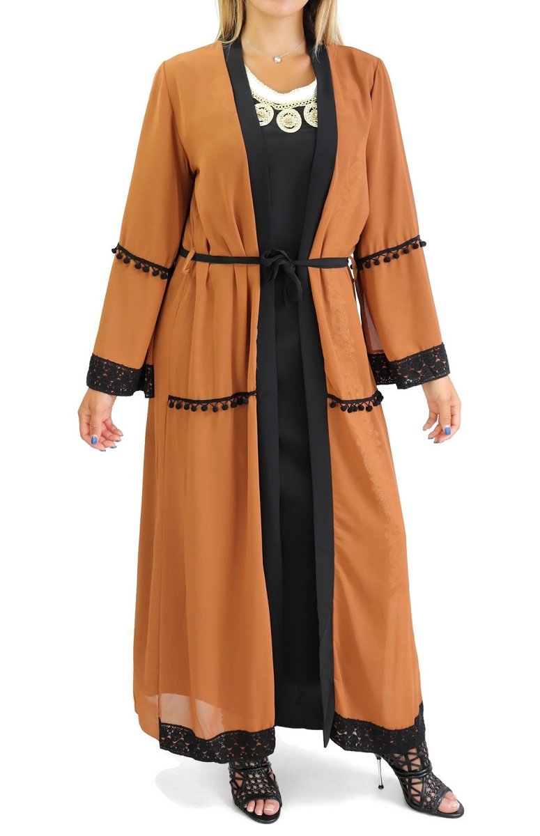 Ensemble robe et Kimono à capuche (Robes pour musulmanes) - Couleur kaki - REF. 35118 (32.00 €)