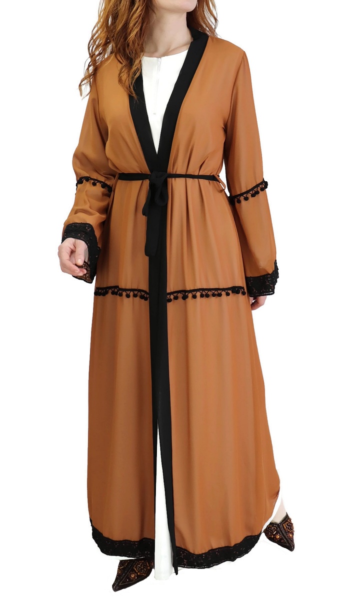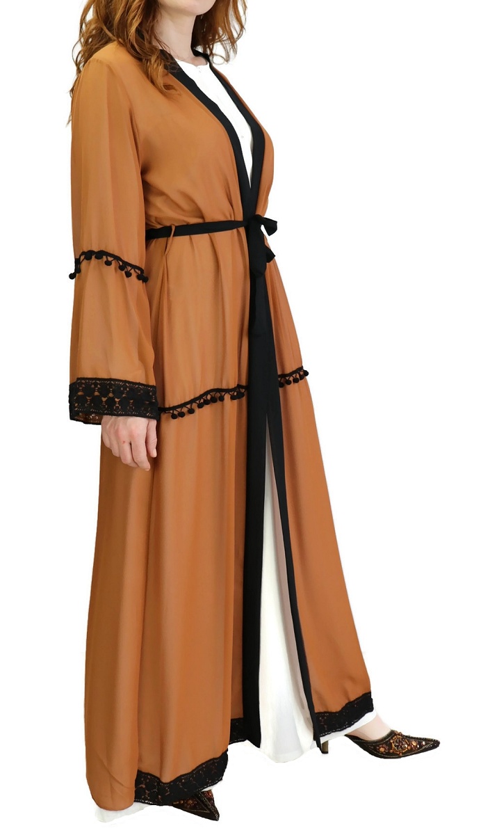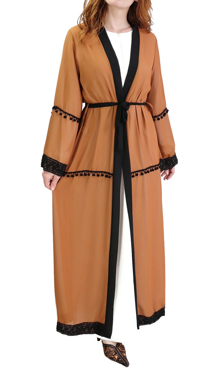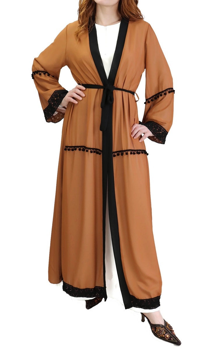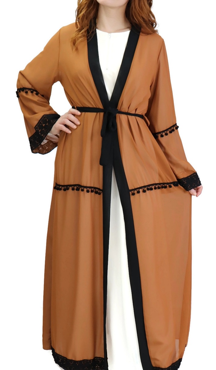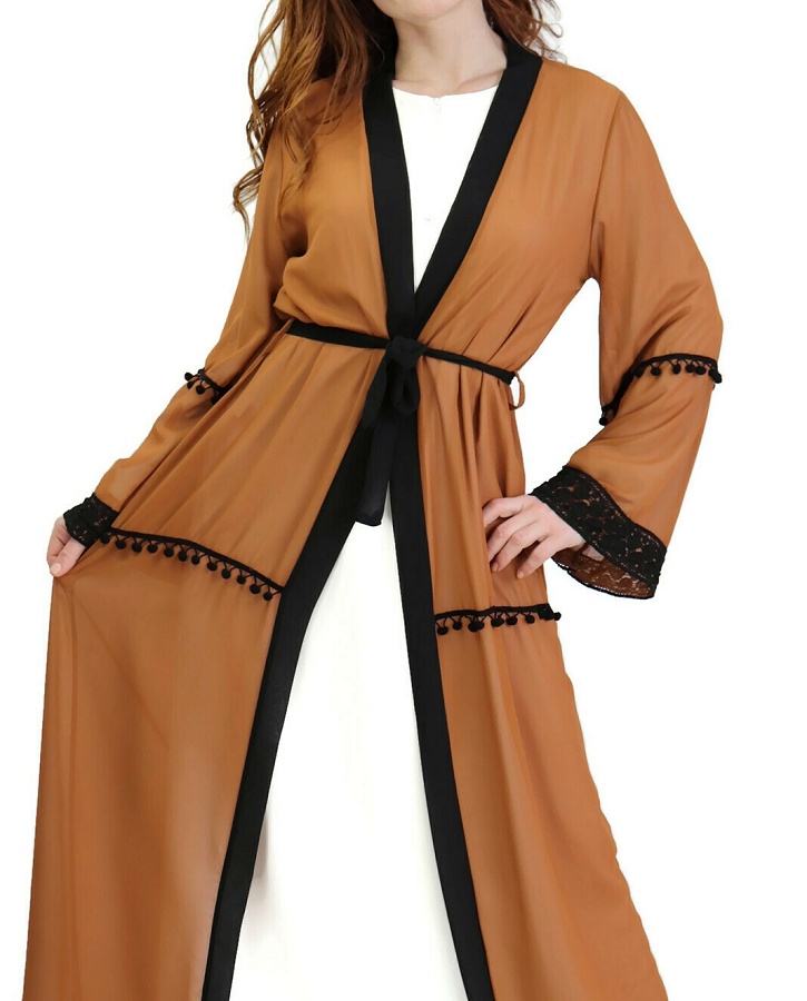 Kimono en mousseline avec ceinture et broderies - Couleur caramel Vetement & Accessoire