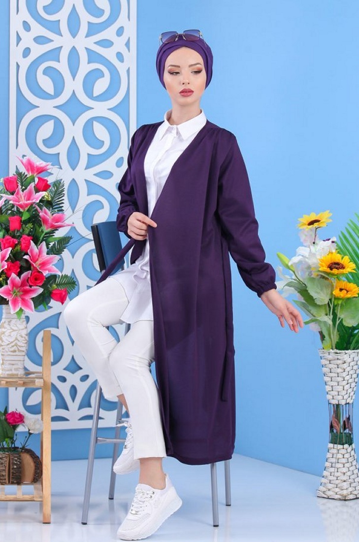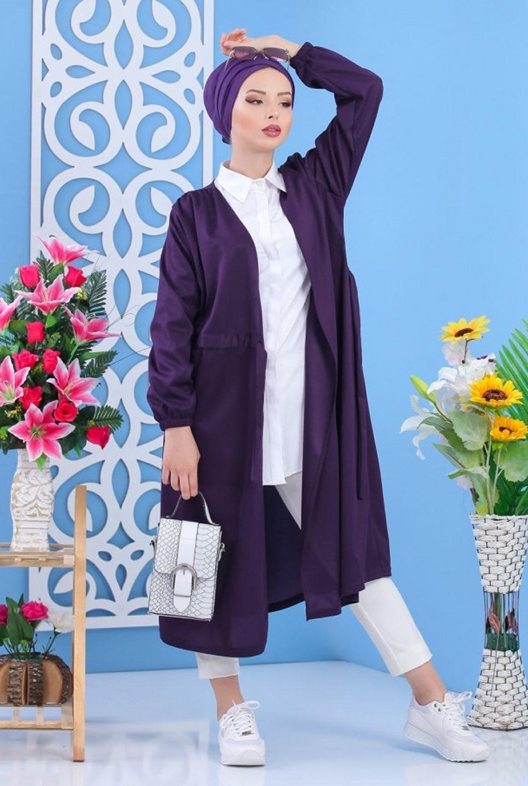 Trench-Coat Long pour femme (Boutique en ligne de Mode islamique Automne Hiver) - Couleur Bleu indigo - REF. 30821 (29.90 €)