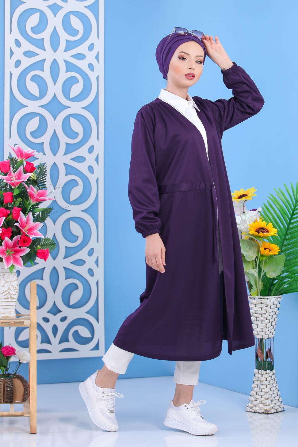 Tunique - Veste longue style saharienne (Vêtement musulman pour femme voilée) - Couleur vert - REF. 36240 (28.00 €)