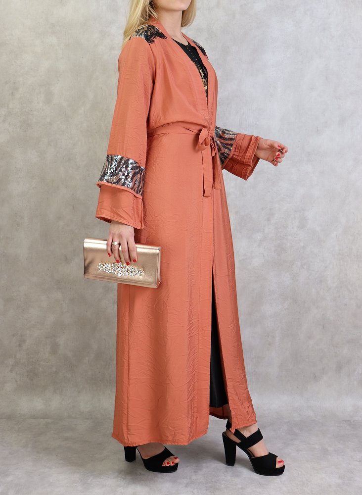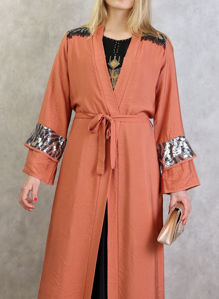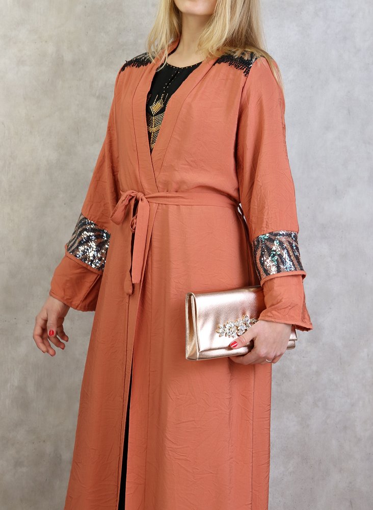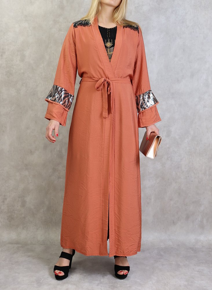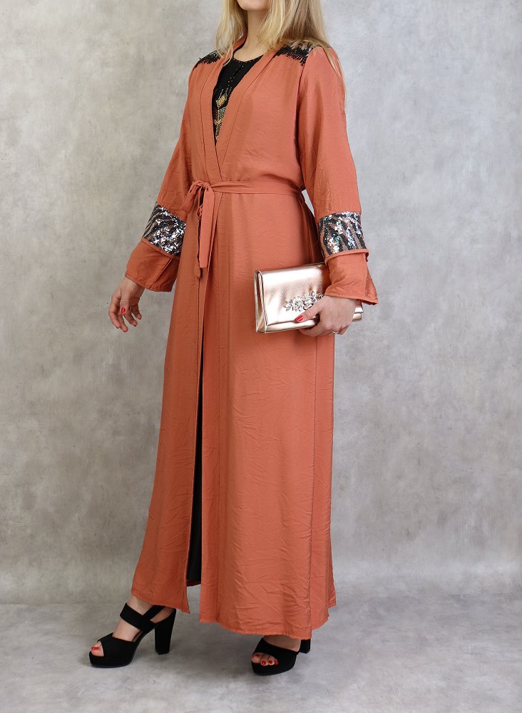 Kimono long a strass de couleur rouille
