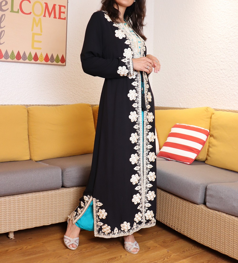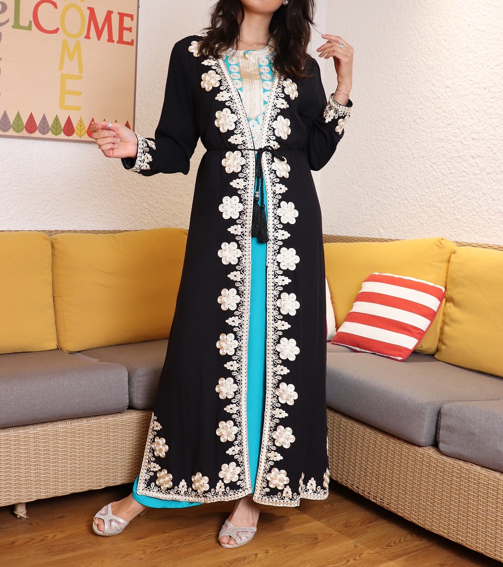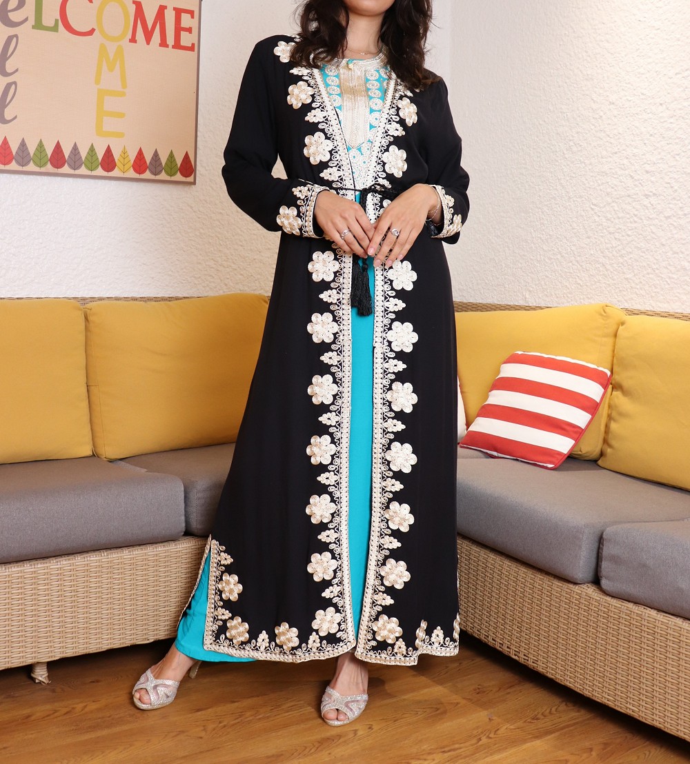 Kimono long avec broderies - Couleur Noir Vetement & Accessoire