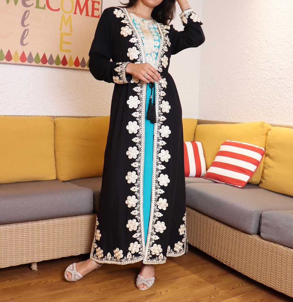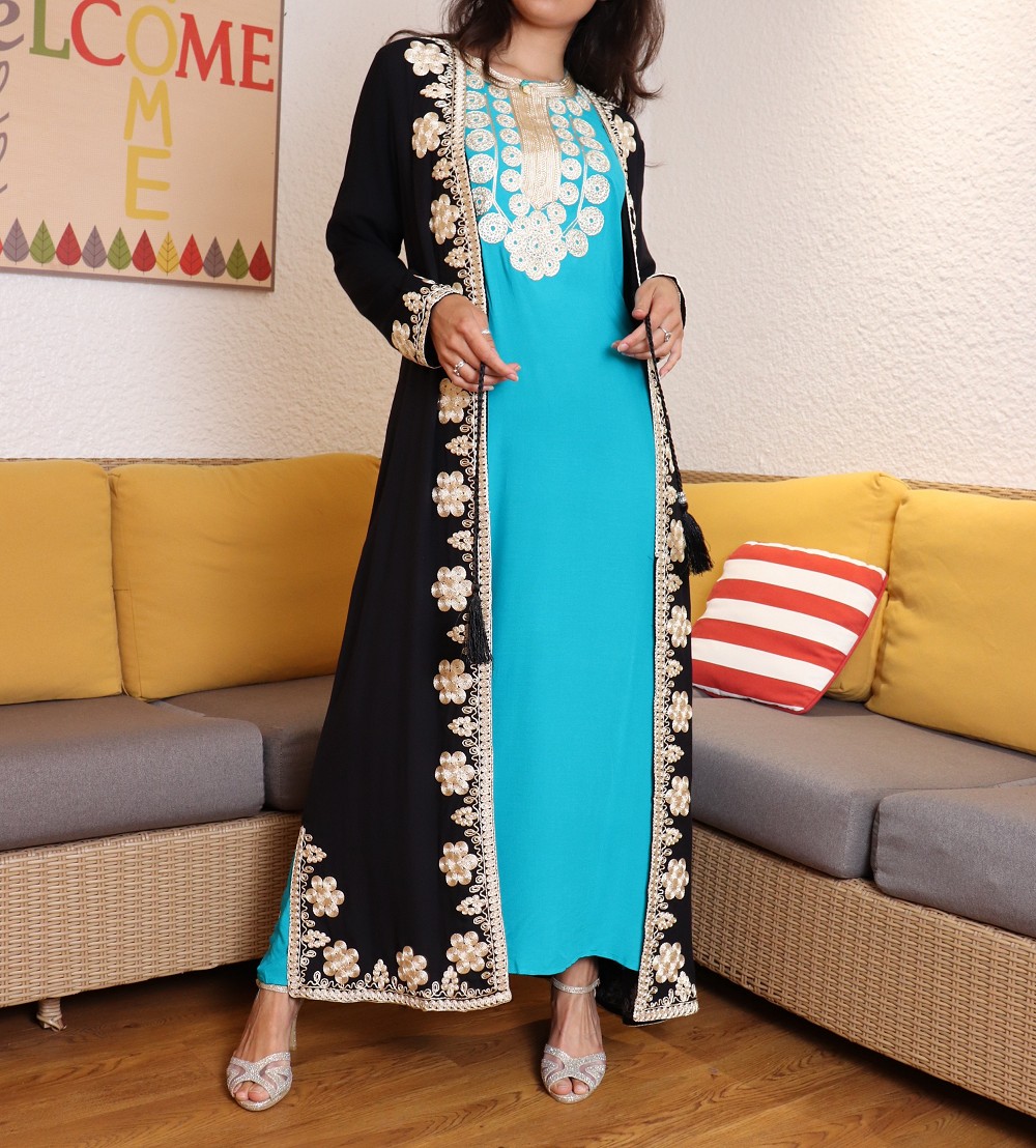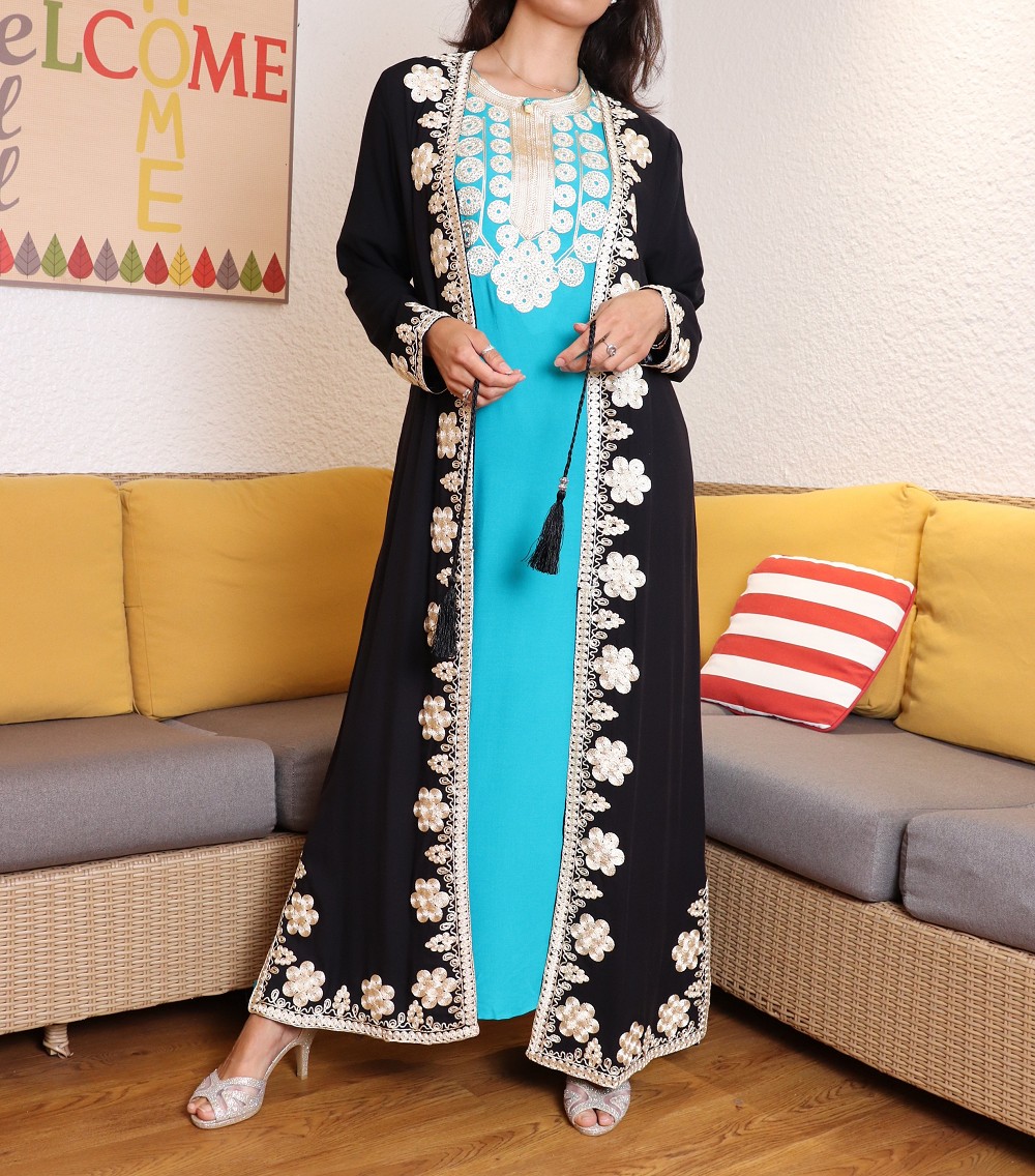 Kimono long avec broderies - Couleur Noir Vetement & Accessoire