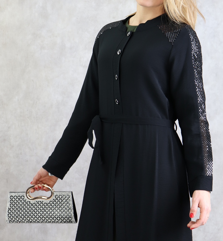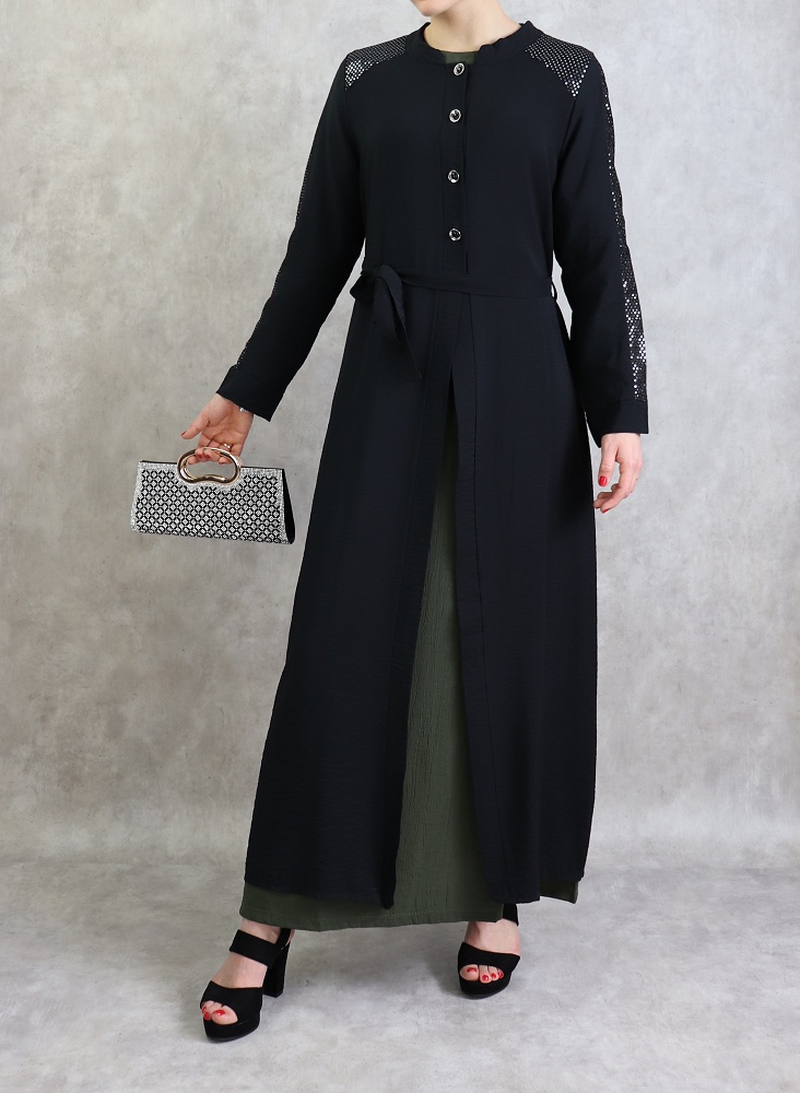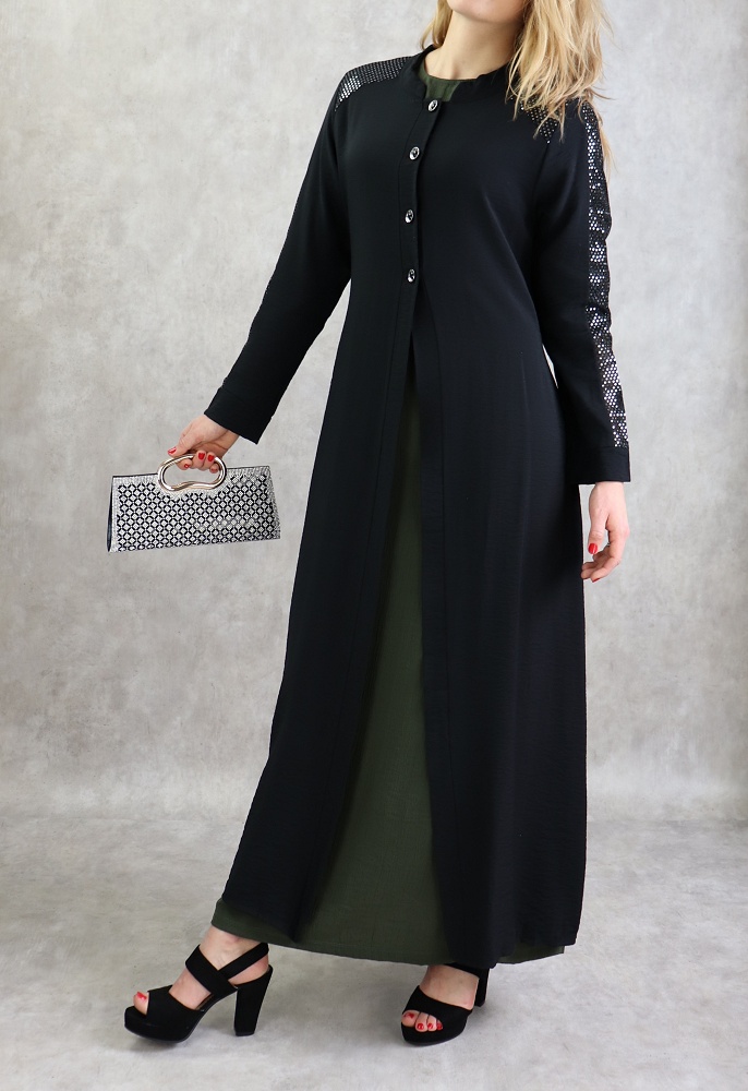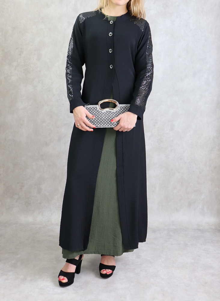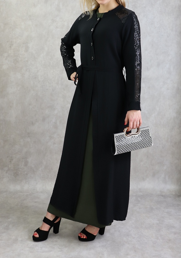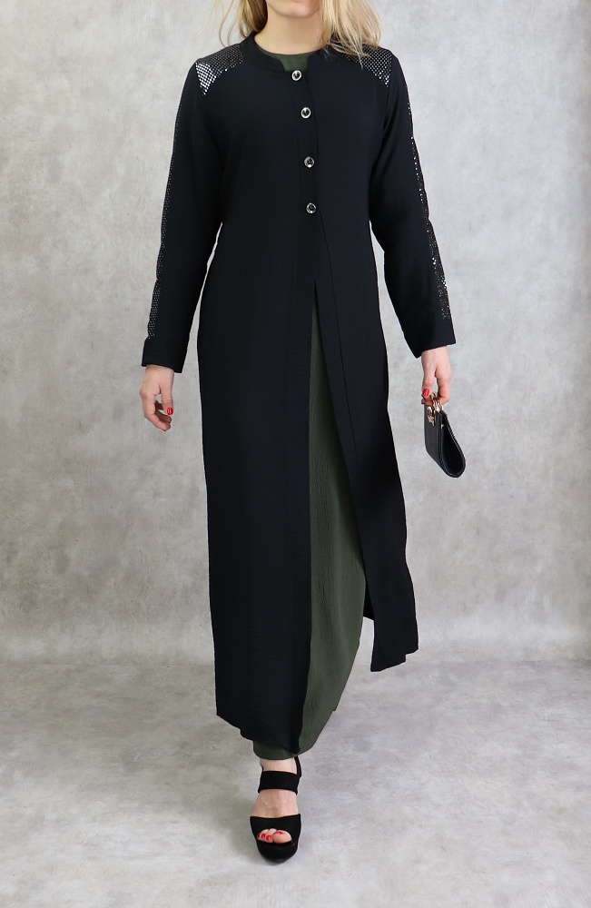 Kimono long avec strass de couleur noir Vetement & Accessoire