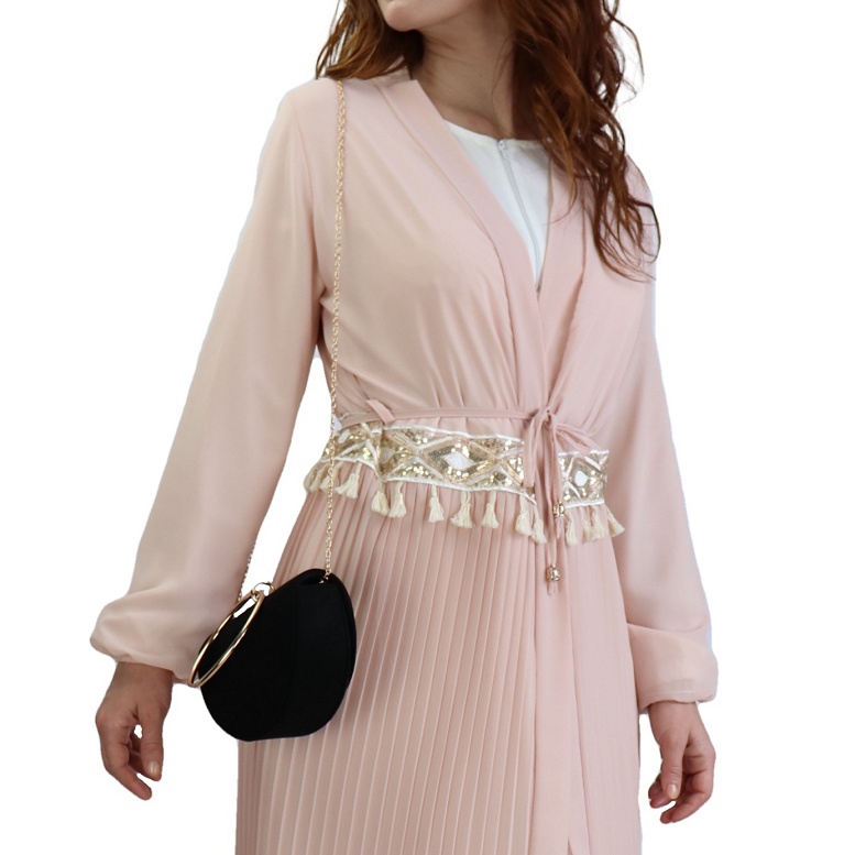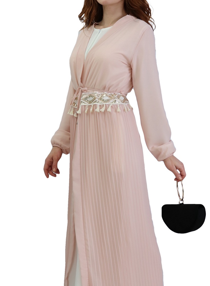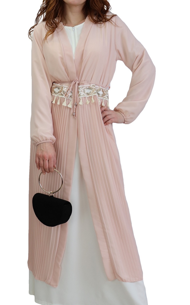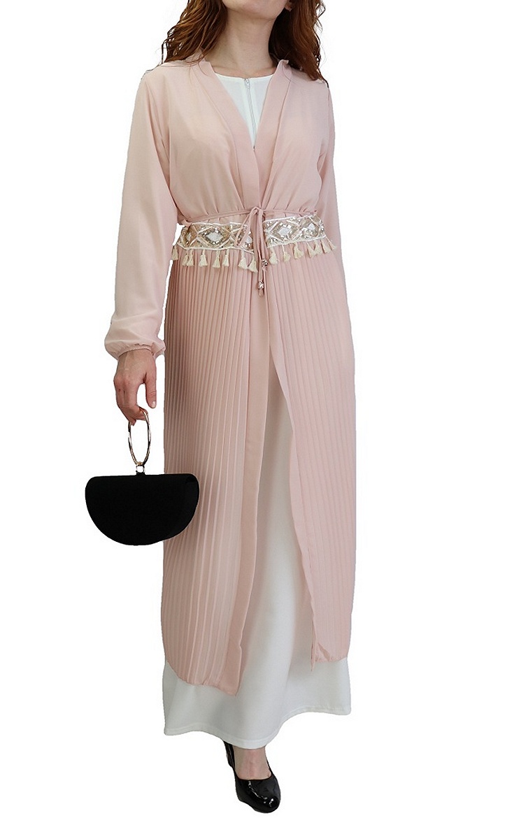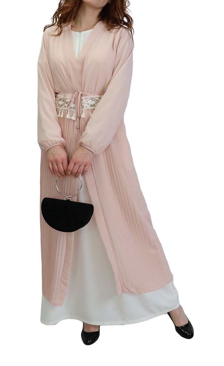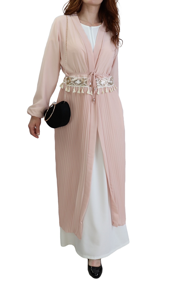 Kimono long plissé style oriental avec décorations et strass pour femme - Couleur rose clair Vetement & Accessoire