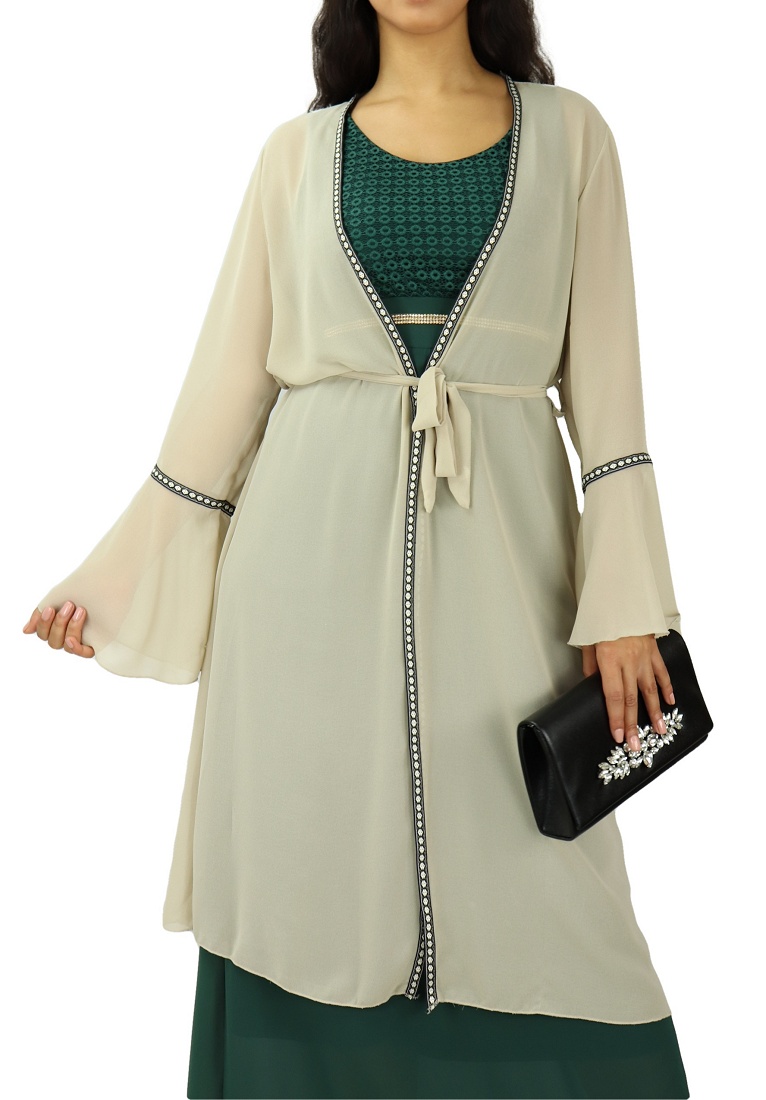 Kimono mi-long avec broderies - Couleur Beige Vetement & Accessoire