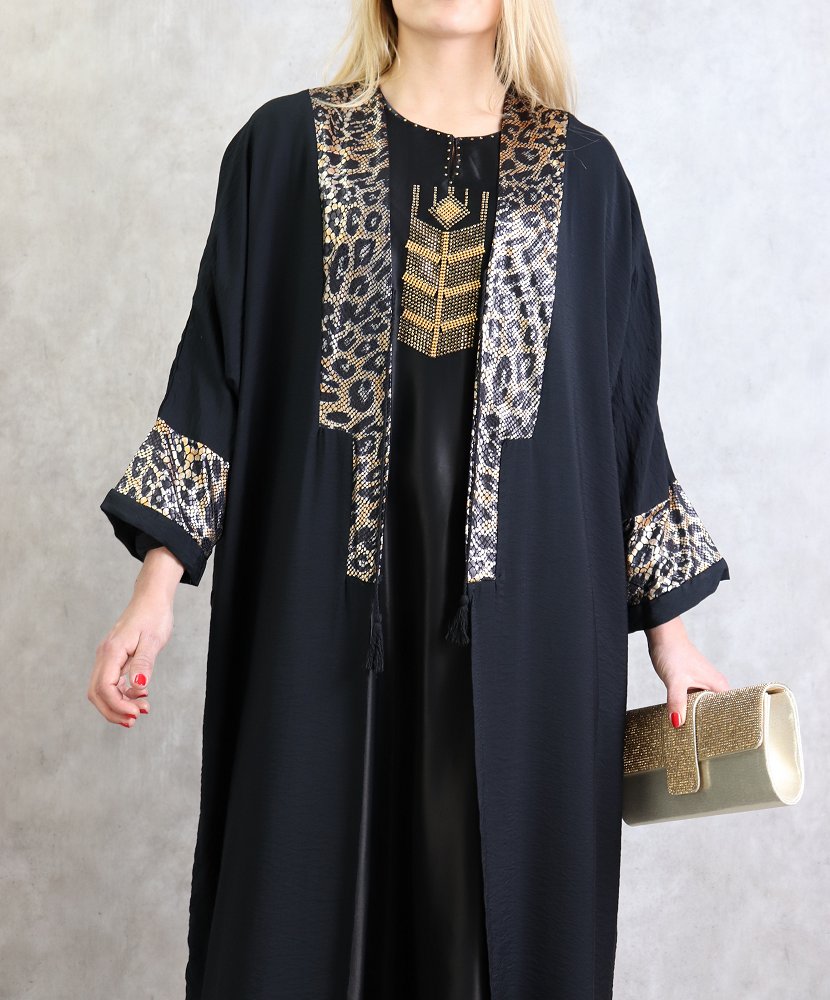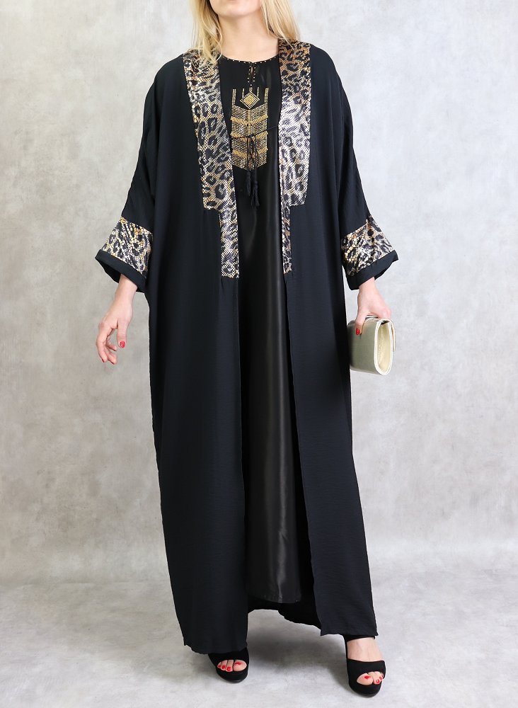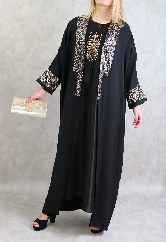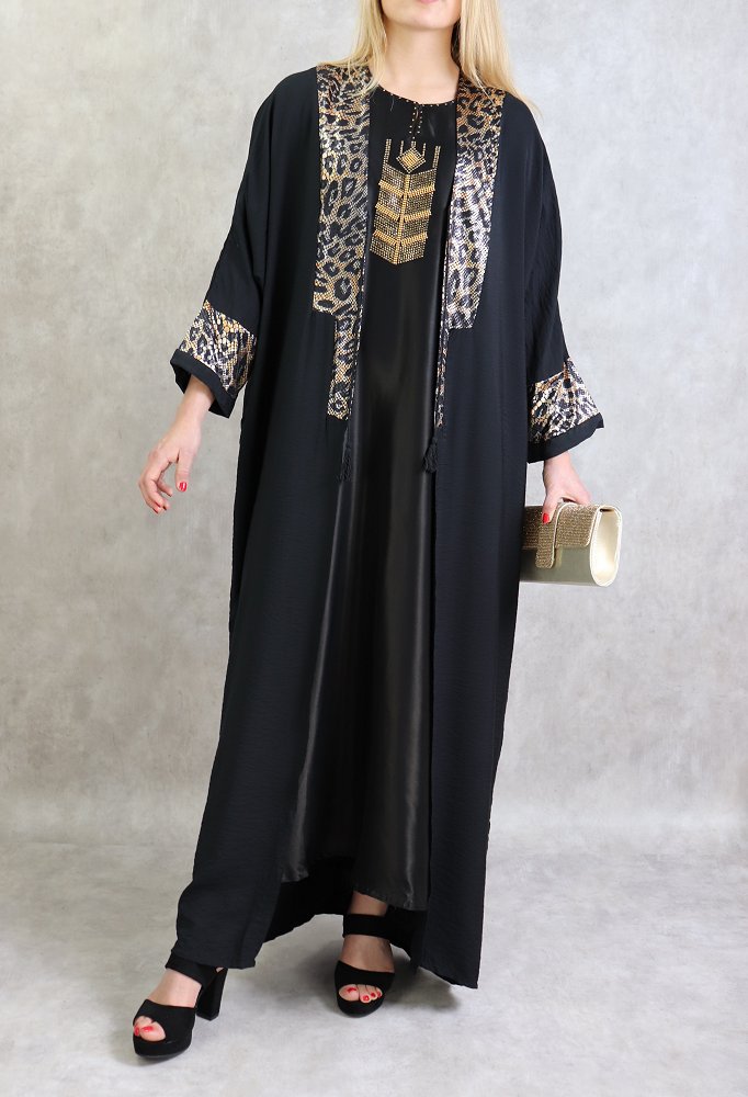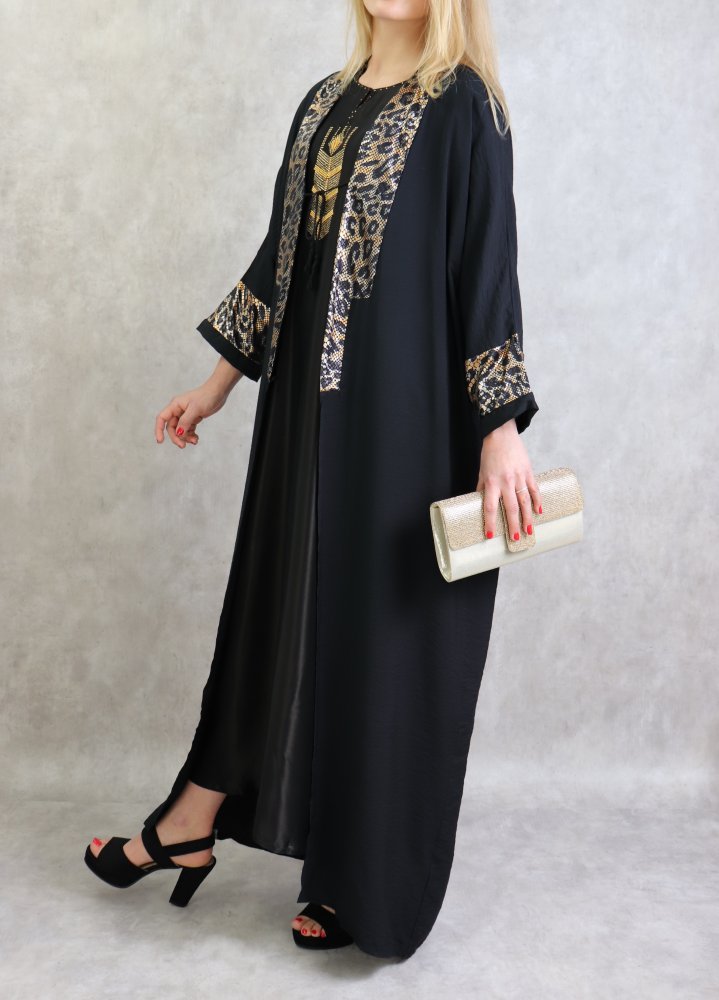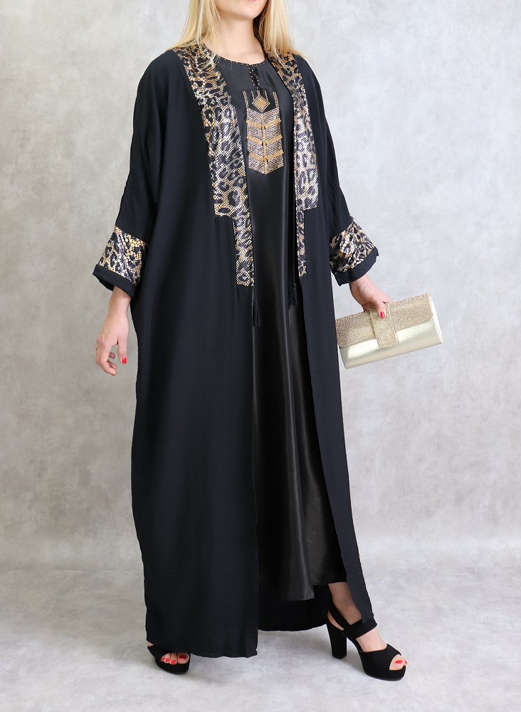 Abaya des Emirats - Robe Noire ornée de broderie et de strass - REF. 31074 (39.00 €)