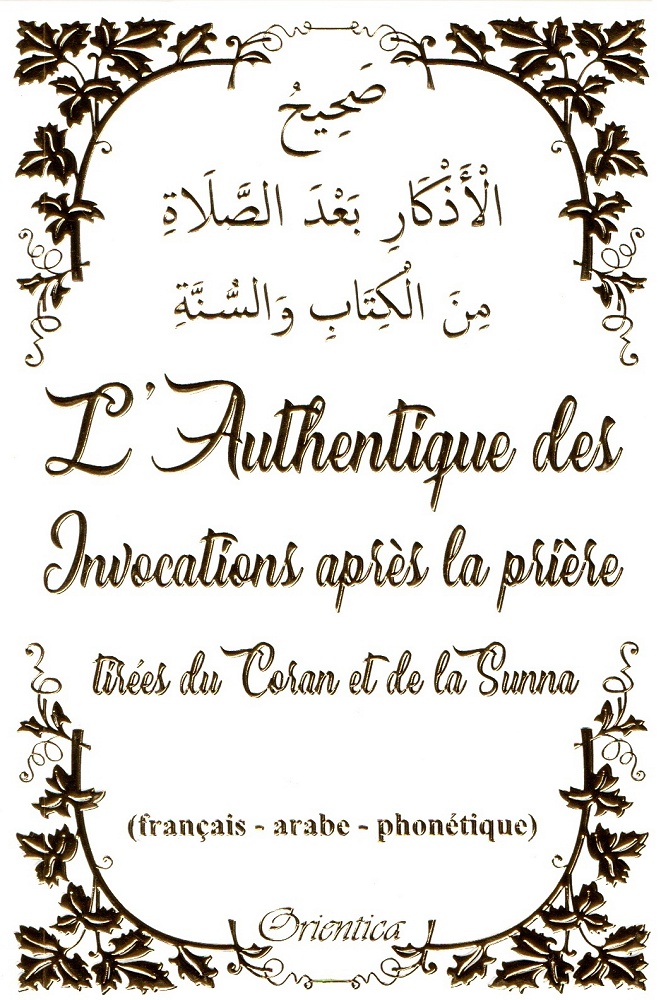 L'Authentique des Invocations après la prière tirées du Coran et de la Sunna (Sahîh Al-Adhkâr Ba‘da As-Salât mina-l-Kitâb wa-s-Sunna صَحِيحُ الْأَذْكَارِ بَعْدَ الصَّلَاةِ مِنَ الْكِتَابِ وَالسُّنَّةِ) en français - arabe - phonétique. Couverture blanche dorée.