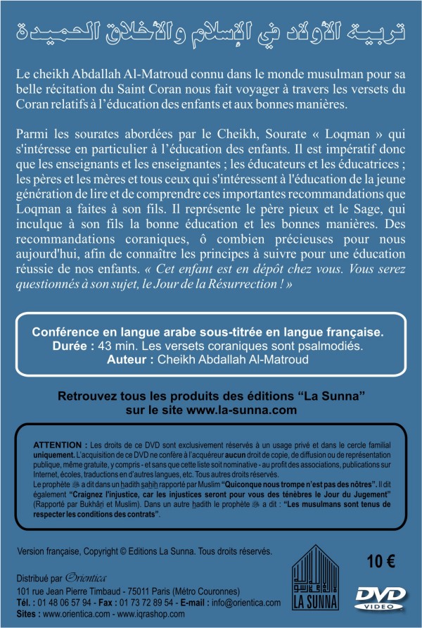 L'éducation des enfants en islam et les bonnes manières (DVD - Cheikh Al-Matroud) - REF. 12943 (10.00 €)