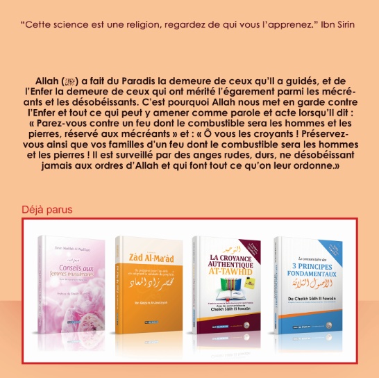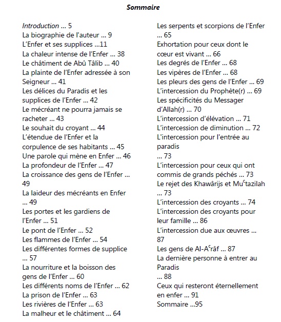 Titre complet : "L’authentique de la description de L’ENFER et ses supplices" (صحيح كتاب صفة النار و ما فيها من العذاب الأليم) Par l’imam Ibn Kathîr Ad-Dimashqî