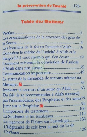 Préserver l'unicité d'Allah dans toute sa pureté compte parmi les priorité des Prophètes et Envoyés ainsi que se qui suivent leurs pas et se conformément a leurs enseignements jusqu'au Jour du Jugement dernier. Telle est la raison d'être de ce livre qui propose une selection de textes écrits par des savants musulmans au sujet du Tawhid. Ils insistent notamment sur l'obligation de n'adorer que Lui et la nécessité de s'éloigner de toute innovation en matière de religion.