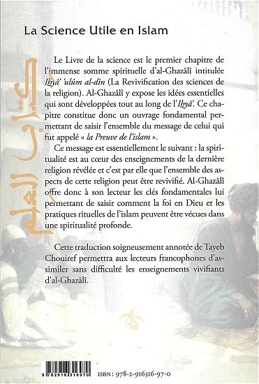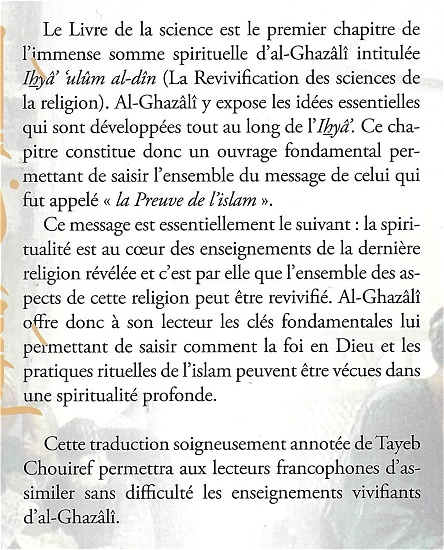 Le Livre de la science est le premier chapitre de l'immense somme spirituelle d'al-Ghazali intitulée Ihya ulum ad-din ....