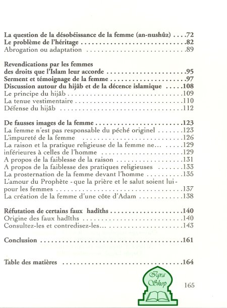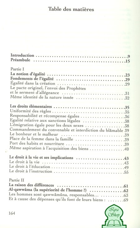 Le livre de Dieu reconnaît donc à la femme des droits inconditionnels dans le domaine public et familial.
