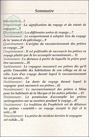 Étant donné la multitude d'avis divergents autour de la question du voyage, une connaissance approximatives de ses règles amènent nombre de croyants à commettre de nombreuses erreurs ou encore à se priver de facilitées octroyées par le Législateur. Il convient donc au commun des musulmans de se référer à l'avis d'un savant reconnu pour son intégrité. Et l'auteur ne s'y est pas trompé en présentant cette épître exposant la jurisprudence du voyage en disant : j'ai beaucoup profité, pour ce travail, des appréciations et corrections de notre Sheikh, l'Imâm Ibn Bâz. En annexe, une série de questions - réponses avec le Cheikh Al-Uthaymîn met en évidence nombre de situations concrètes. un ouvrage pratique... indispensable.