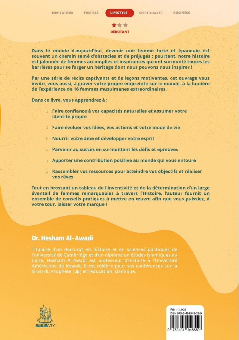 Cette série de récits captivants et de leçons motivantes, cet ouvrage nous invite à graver notre propre empreinte sur le monde, à la lumière de l’expérience de 16 femmes musulmanes extraordinaires.