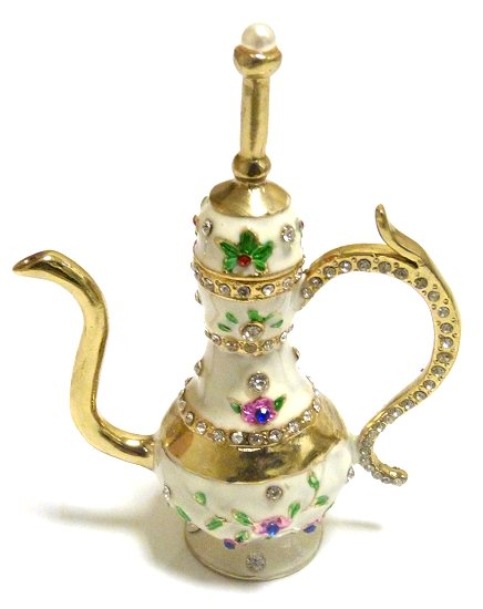 Cet objet a été fait dans une structure métallique. Sous forme de théière, la lampe est joliment décorée avec des diamants et des motifs fleuris. C'est un plaisir garanti que de la voir orner votre étagère ou votre table basse de par sa classe.