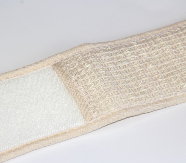 Lanière de massage exfoliante, double face, pour le dos et le corps avec prise en main facile. L’utilisation régulière de cette lanière en crin rend la peau plus douce au toucher et redonne de l'éclat. La face en crin assure un massage exfoliant tandis que la face en coton permet un lavage tout en douceur.