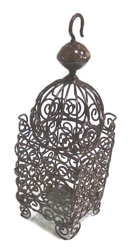 Petite lanterne marocaine de type Slimani en fer forgé marron terne garni de ciselures - REF. 15553 (19.90 €)