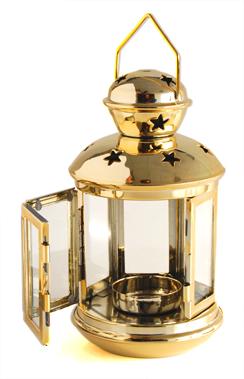 Très jolie lanterne décorative dorée, avec vitres en verre, et des étoiles ciselées dans le corps de la lanterne, et dotée d'un crochet de suspension, et d'un emplacement conique à l’intérieur pour placer une bougie. Une porte s'ouvre sur le coté pour permettre de placer la bougie à l’intérieur. Cette lanterne décorative dorée est idéale pour la décoration en intérieur ou en extérieur.