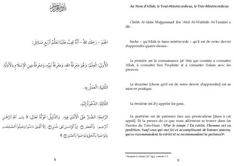 Les trois (3) fondements et leurs preuves (Bilingue français/arabe) - اَلْأُصُولُ الثَّلَاثَةُ وَأَدِلَّتُهَا