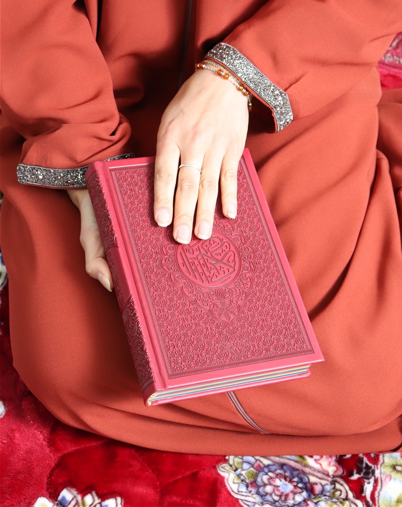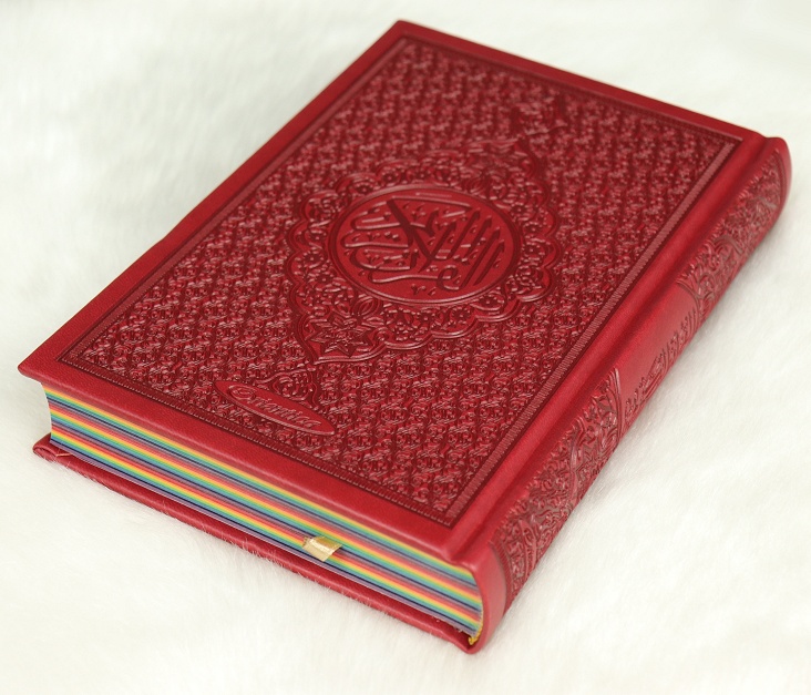Magnifique Coran avec couverture cartonnée de type cuir (doux au toucher). Impression couleur, avec marque page intégré. Idéal pour offrir.