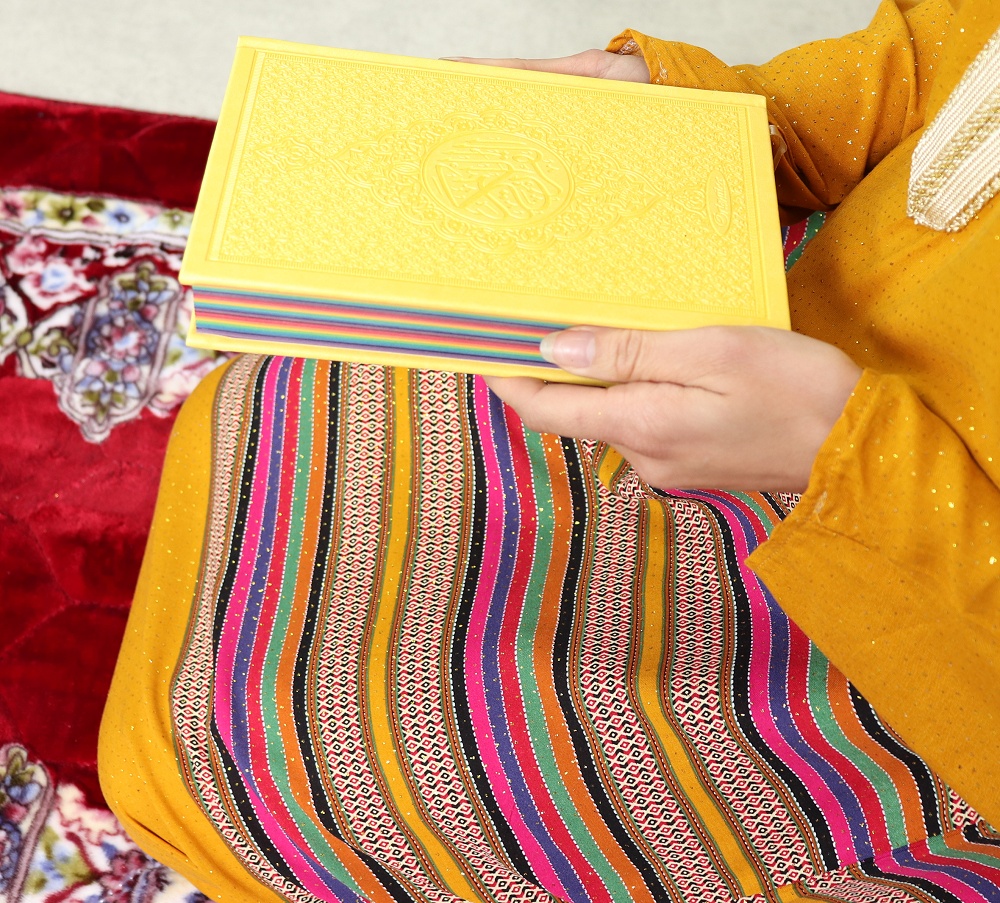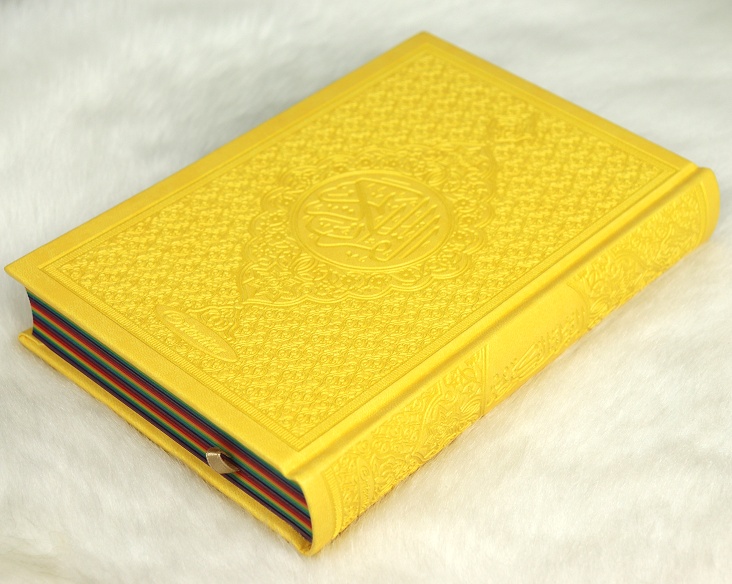 Le Coran Arc-en-ciel version arabe uniquement (Lecture Hafs) - Couverture de luxe en simili cuir jaune.