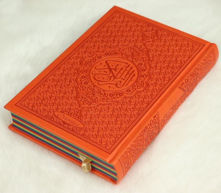 Magnifique Coran avec couverture cartonnée de type cuir (doux au toucher). Impression couleur, avec marque page intégré. Idéal pour offrir.