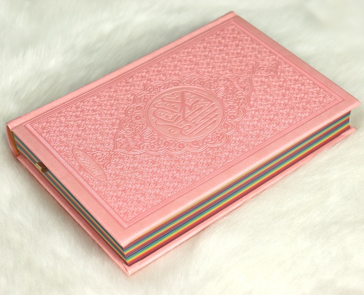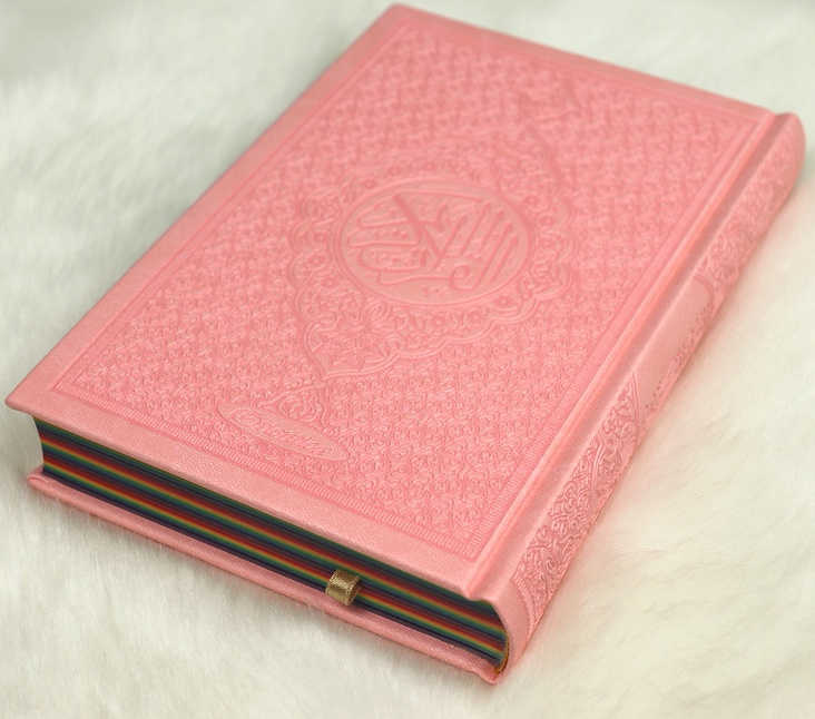 Le Coran en langue arabe avec pages Arc-en-ciel - Couverture de luxe cuir de couleur Rose bonbon - REF. 38571 (19.90 €)