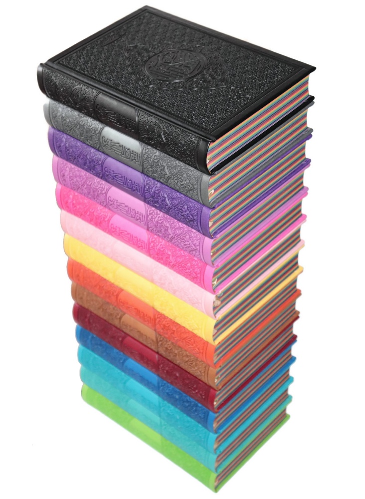 Pack N°1 de 5 Corans de luxe en 5 couleurs de couvertures différentes : Le Saint Coran (français/arabe/phonétique) avec pages en couleurs d'Arc-en-ciel (Rainbow) - REF. 28643 (145.00 €) - En Promotion à 129.00 €