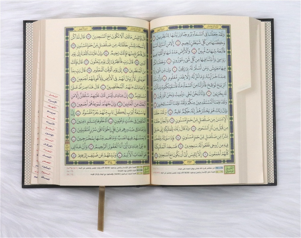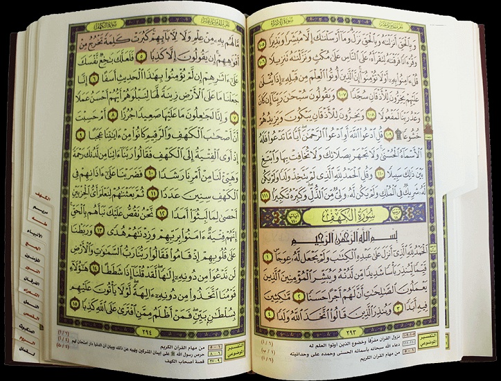 طريقة مبتكرة للوصول الى السورة المطلوبة بسهولة من خلال فهرسة جانبية ظاهرة على طرف المصحف
