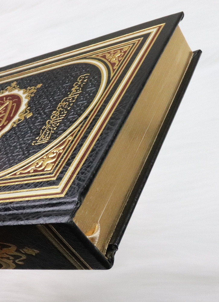 Couverture de luxe dorée, et doré étalement sur le côté au niveau du papier.