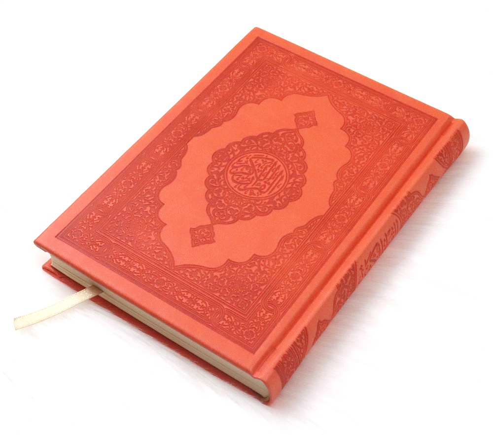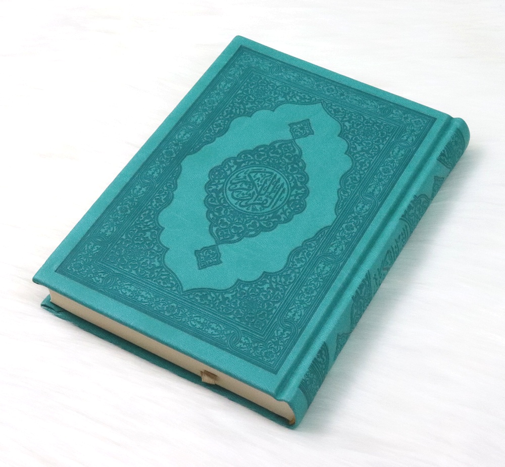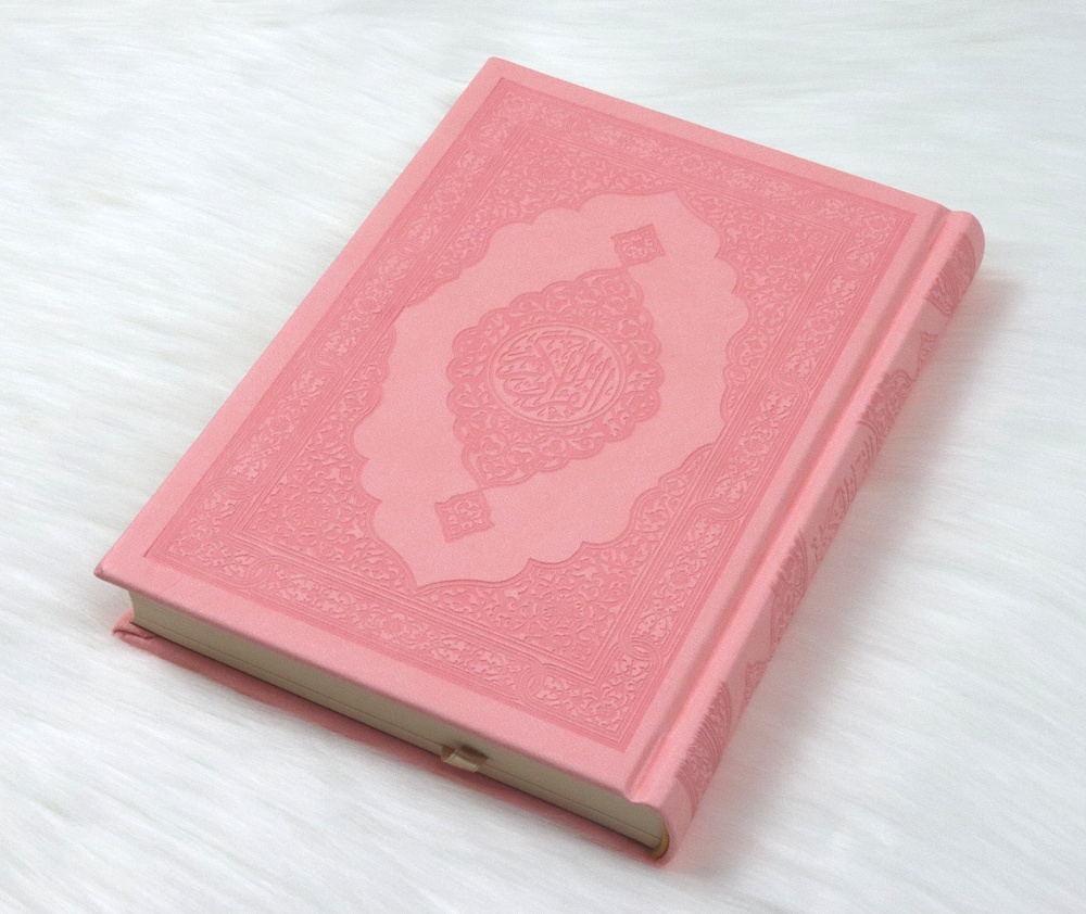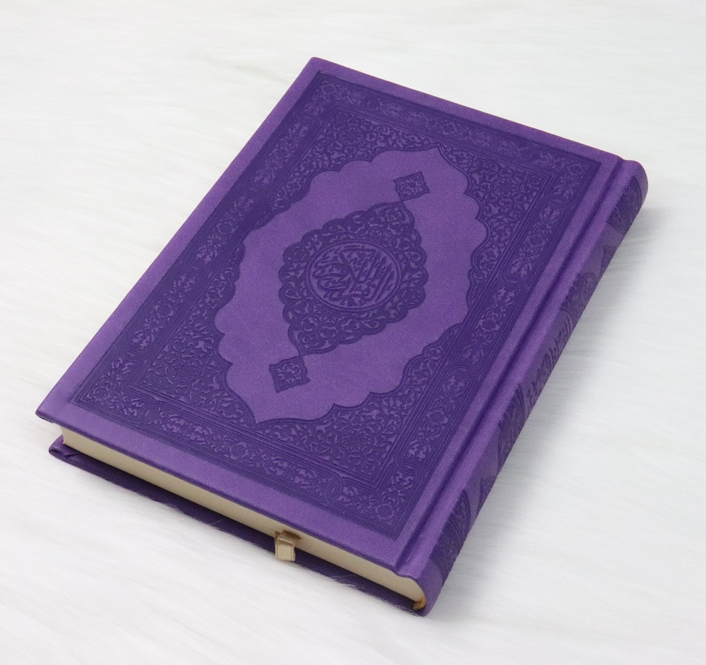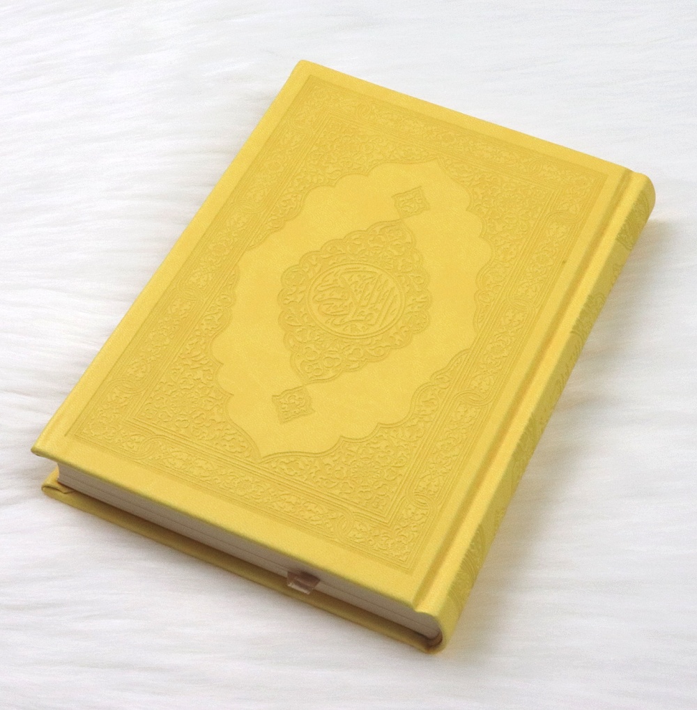Le Saint Coran en langue arabe (lecture Hafs) avec couverture cuir doux au toucher (PU). Format moyen 14x20 cm. Impression deux couleurs et marque page en soie intégré.