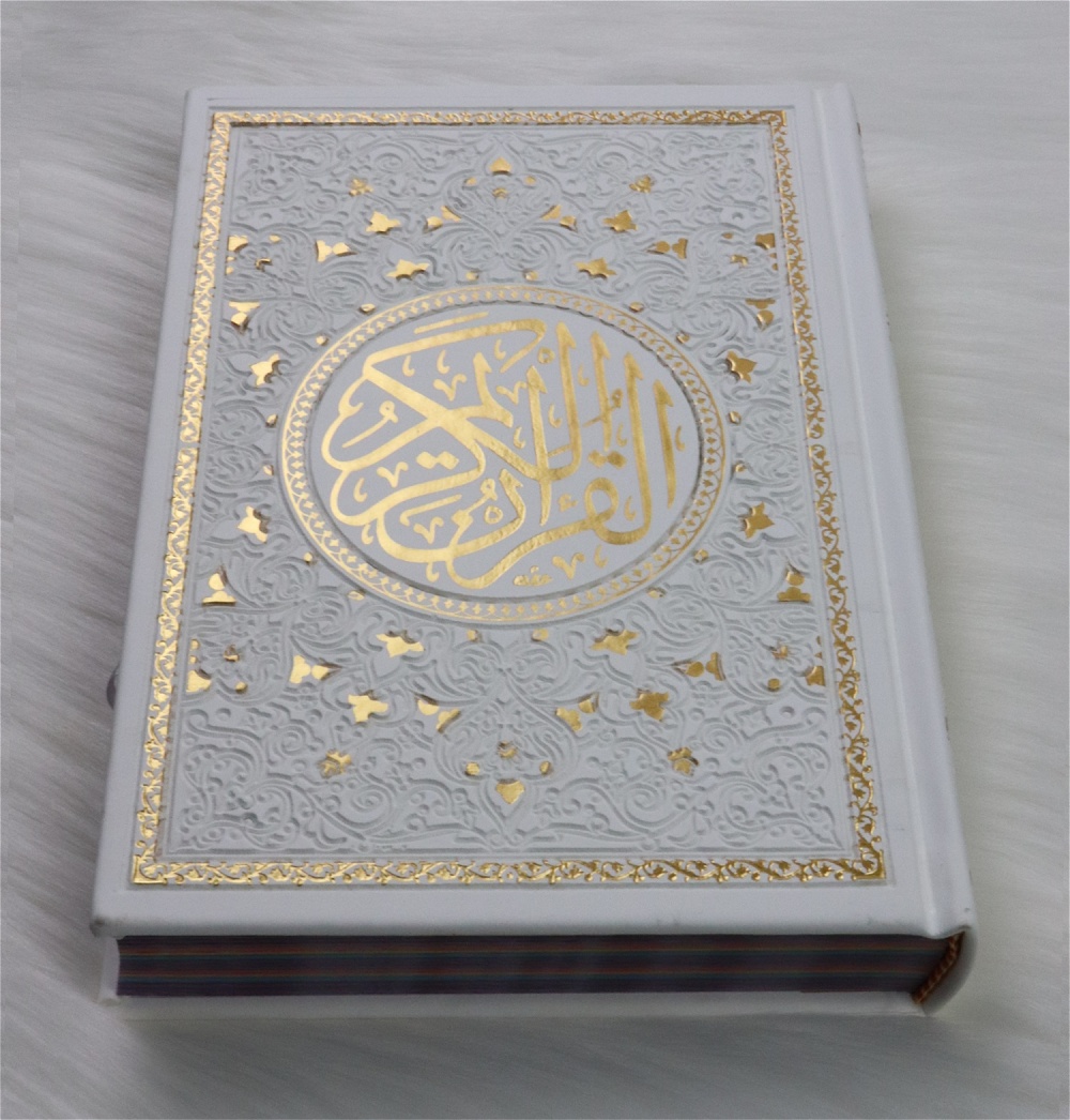 Le Coran en langue arabe avec pages Arc-en-ciel - Couverture de luxe cuir blanc doré - REF. 38566 (19.90 €)
