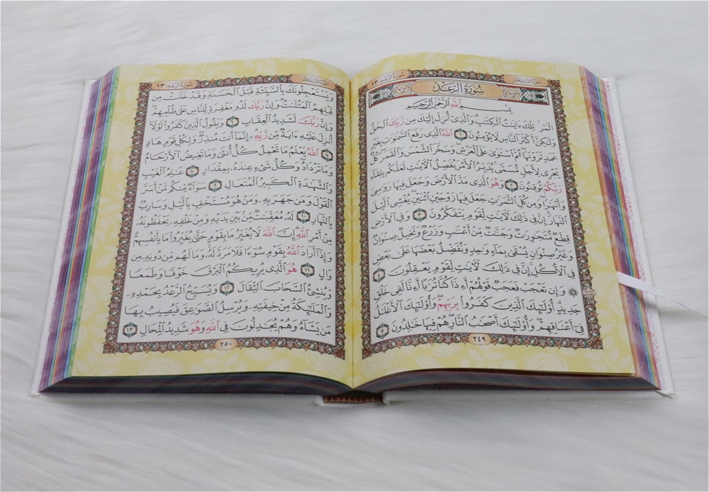 Le Coran en langue arabe avec pages Arc-en-ciel - Couverture de luxe cuir blanc doré Livre