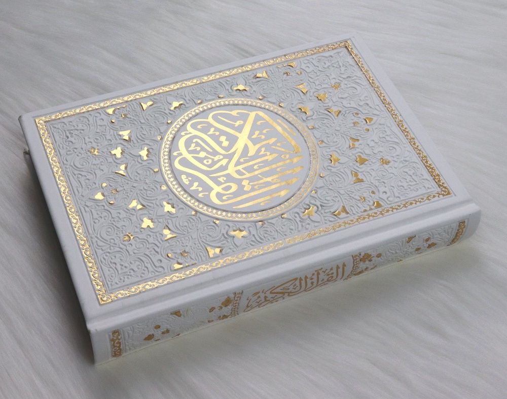 Le Saint Coran version arabe (Lecture Hafs) avec couverture Blanche dorée (17 x 24 cm) - REF. 24518 (14.90 €)