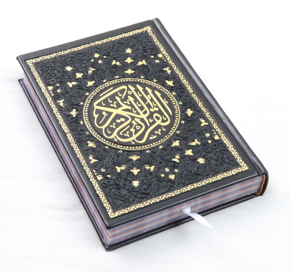 Le Coran en langue arabe avec pages Arc-en-ciel - Couverture de luxe cuir de couleur Noir dore