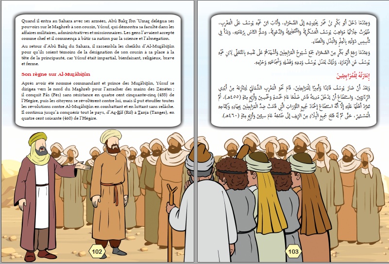 Dans ce livre captivant, riche en illustrations, au texte bilingue (français – arabe), simple et adapté aussi bien au jeune public qu’aux adultes, nous vous présentons 12 des plus éminents conquérants et héros de l’islam, parmi lesquels : Az-Zubayr Ibn Al-‘Awwâm, Khâlid Ibn Al-Walîd, ‘Uqba Ibn Nâfi‘, Hârûn Ar-Rachîd, Yûsuf Ibn Tâchfîn, Salâh Ad-Dîn Al-Ayyûbî, Sayf Ad-Dîn Qutuz, Târiq Ibn Ziyâd, Muhammad Al-Fâtih, l’émir Abdelkader, ‘Umar Al-Mukhtâr...
