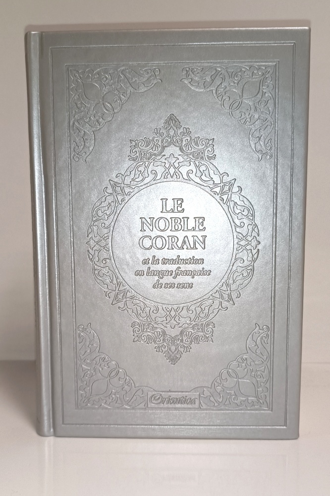 Le Noble Coran bilingue (arabe/français) avec couverture cartonnée de type cuir argenté (silver). Idéal pour offrir.