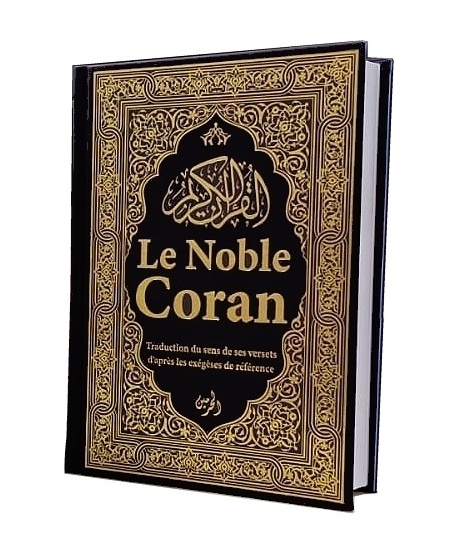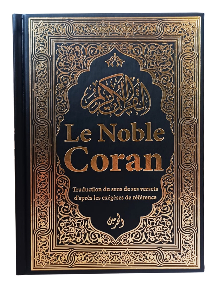 Le Noble Coran et la traduction française du sens de ses versets (bilingue français/arabe) - Grand format (21 x 28,50 cm) - Couverture rigide similicuir de luxe - Couleur Noir doré - REF. 36957 (35.00 €)