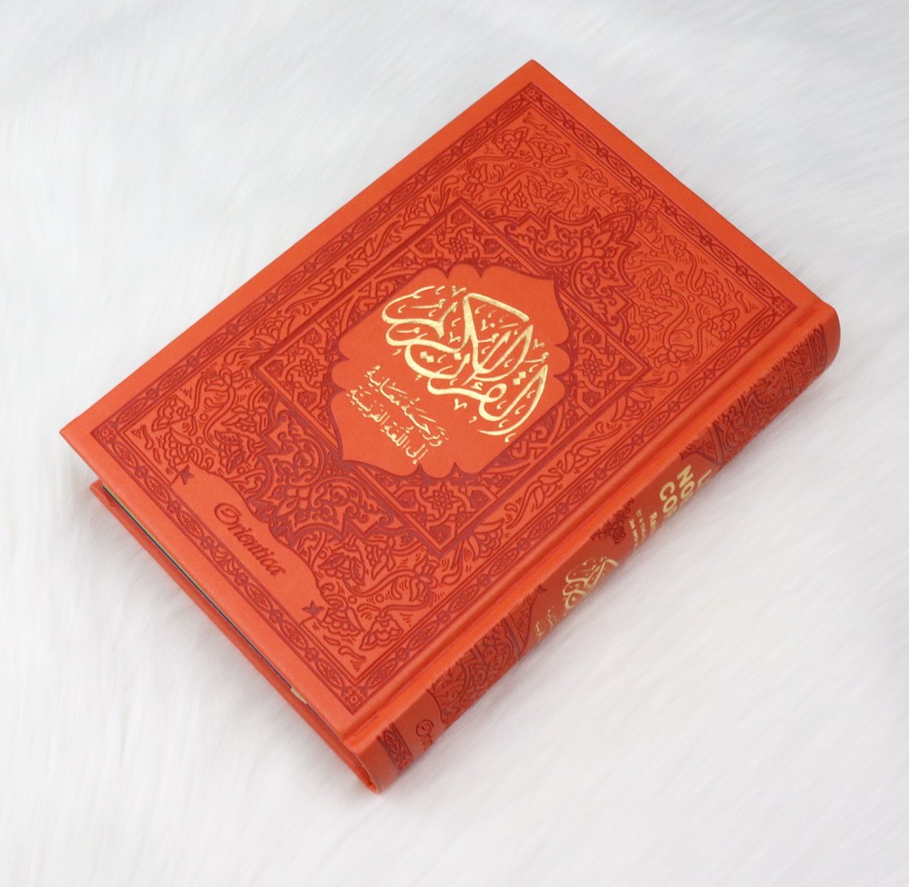 Ce Coran Arc-en-ciel (en anglais "Rainbow Quran") a une couverture cartonnée de type cuir, doux au toucher. Très jolie couleur orange. Idéal pour offrir.