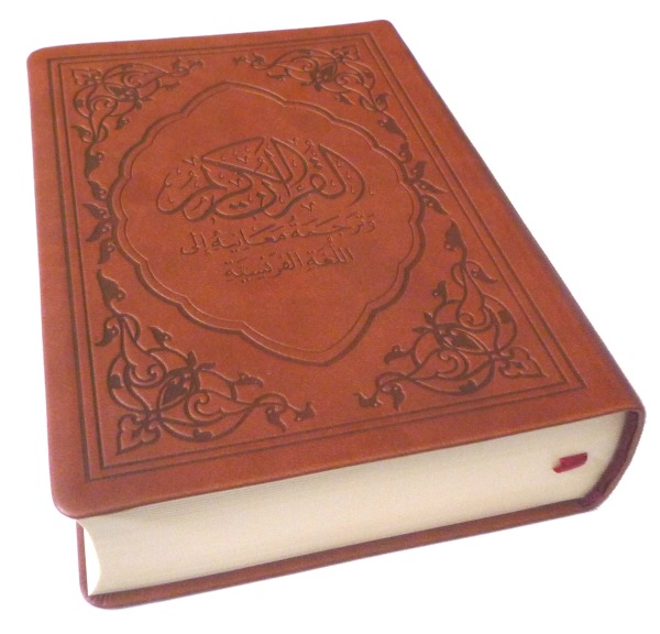 Le Saint Coran - Transcription phonétique (de l'arabe) et Traduction des sens en français et arabe - Edition de luxe (Couverture en cuir couleur Marron doré) - REF. 36191 (26.90 €)