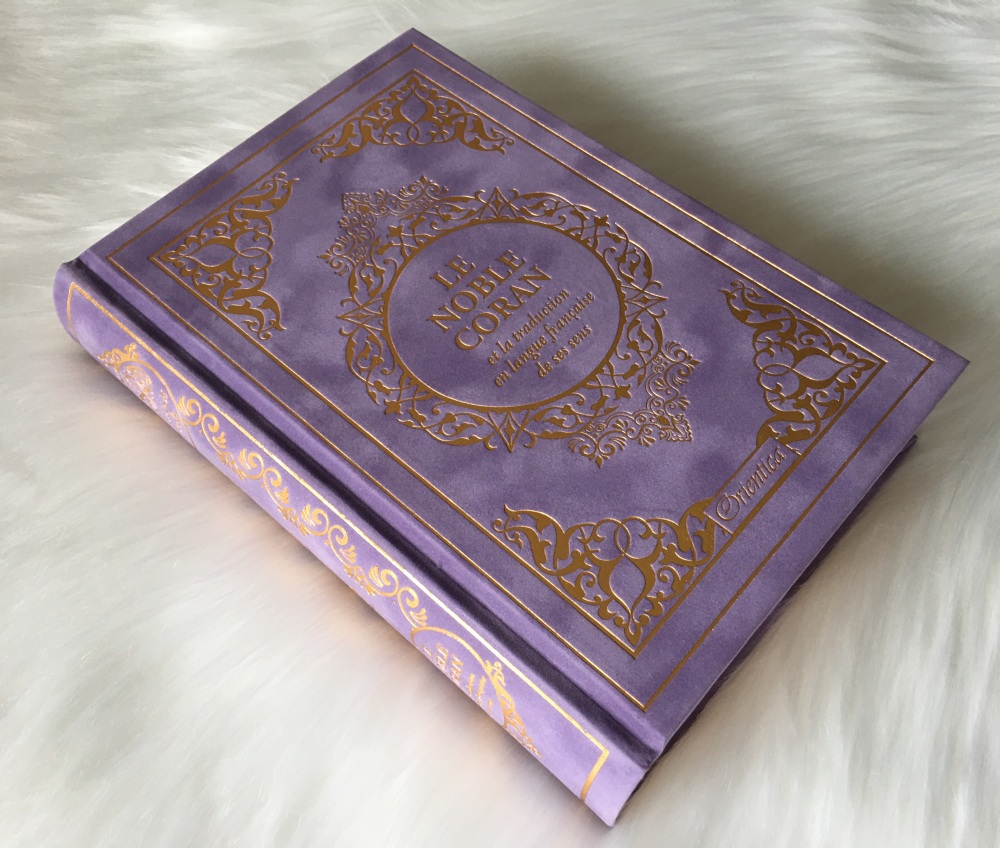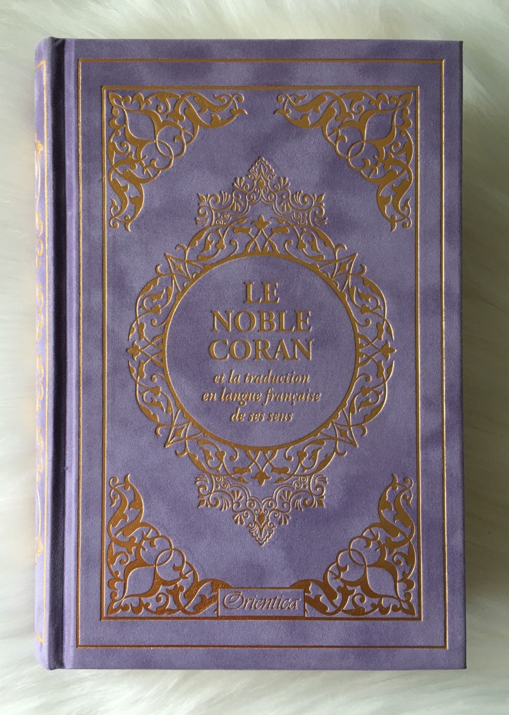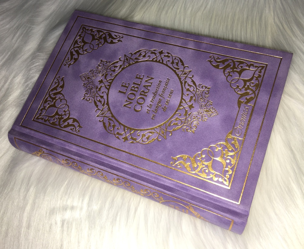 Le Noble Coran et la traduction en langue française de ses sens (Index des sourates sur le côté) - Edition de luxe couverture cartonnée en daim couleur Mauve dorée Livre Coup de coeur